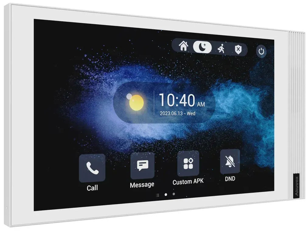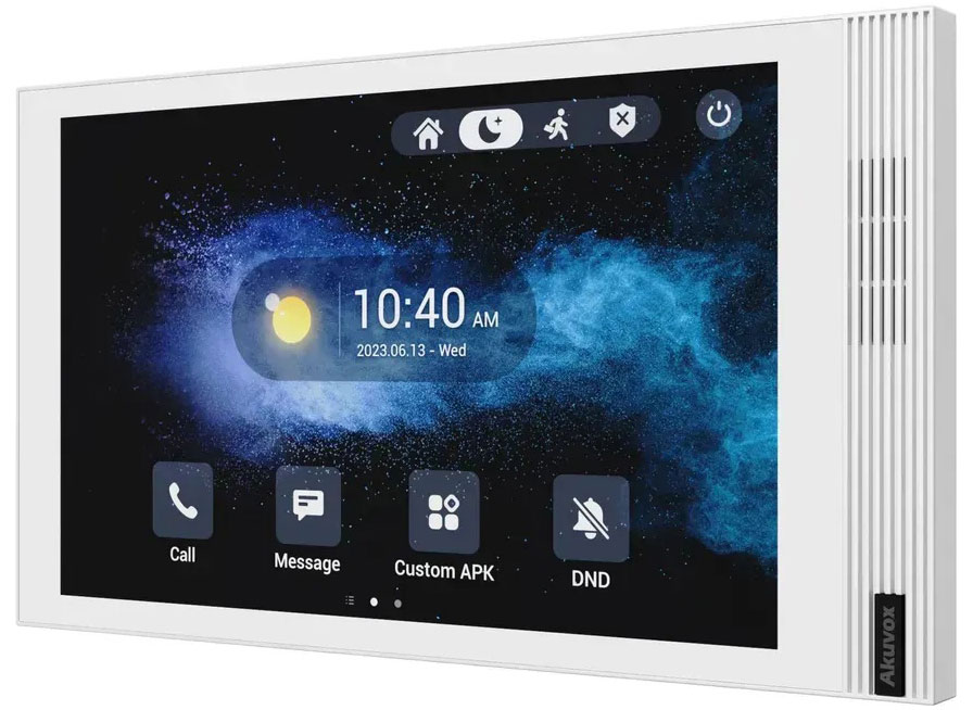 Домофон Akuvox S563W - це внутрішній IP-відеотермінал з підтримкою дротового та бездротового підключення, призначений для сучасних домофонних систем і систем контролю доступу на базі SIP. Пристрій розрахований на настінний або настільний монтаж і оснащений механізмами захисту від втручання, що підвищує рівень фізичної безпеки при експлуатації в житлових та комерційних приміщеннях. Живлення здійснюється через PoE IEEE 802.3af або від зовнішнього джерела 12 В DC.