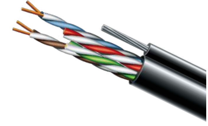Кабель многожильный и симметричный парной скрутки для цифровой связи марки Cat 5e U / UTP 4x2x24AWG РЕ с тросом предназначен для структурированных кабельных сетей на частотах до 100 МГц для внешней прокладки на воздушных линиях связи.