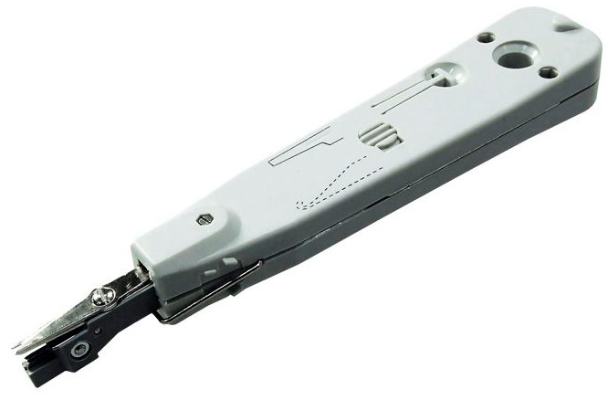 Інструмент для монтажу мережевого кабелю в мережеві розетки. Підходить для розеток RJ45 і RJ11, також допомагає якісно укласти провід в роз'єми патч-панелі. Гострі леза обрізають провід в потрібному місці.