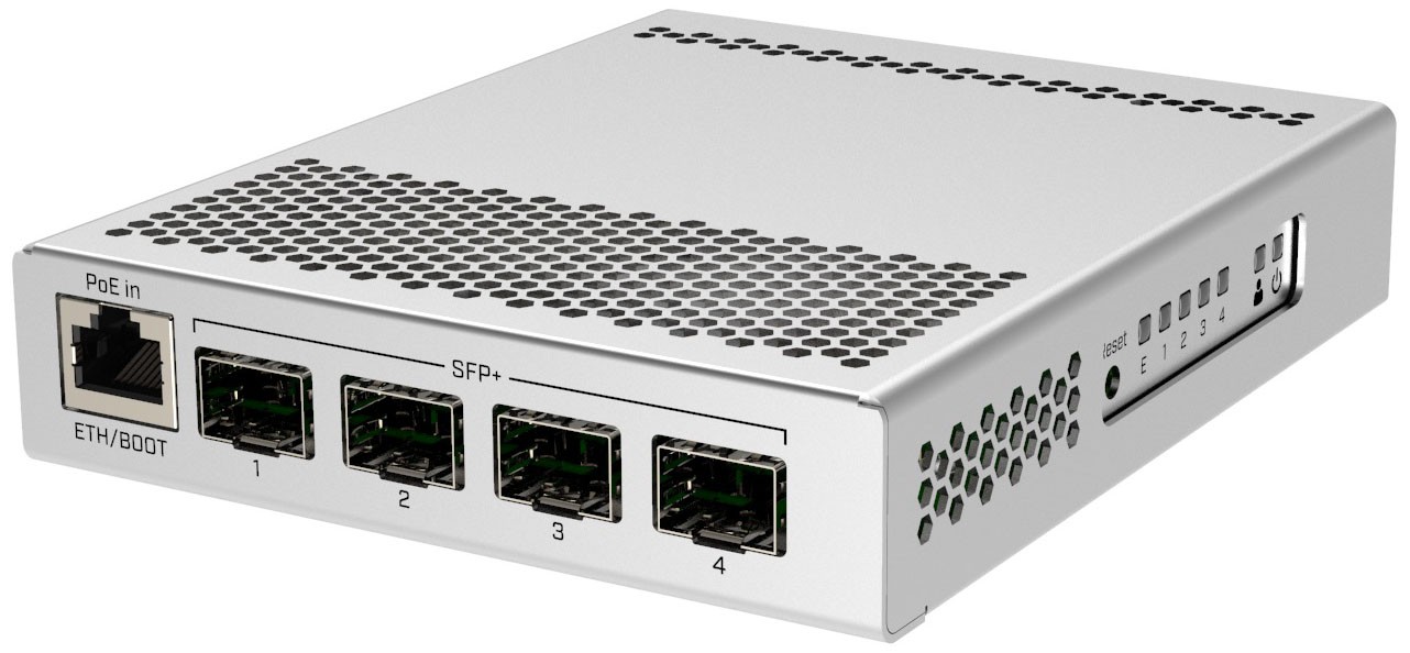 MikroTik CRS305-1G-4S+IN - управляемый коммутатор провайдерского класса с четырьмя портами SFP+ и одним Gigabit Ethernеt портом.