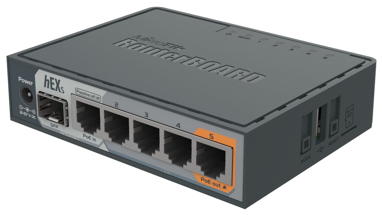 hEX S (RB760iGS) от компании MikroTik - это 5-портовый гигабитный маршрутизатор для установки в местах, где не требуется поддержка Wi-Fi. Новая модель оснащена SFP портом и поддерживает PoE out на последнем порту.