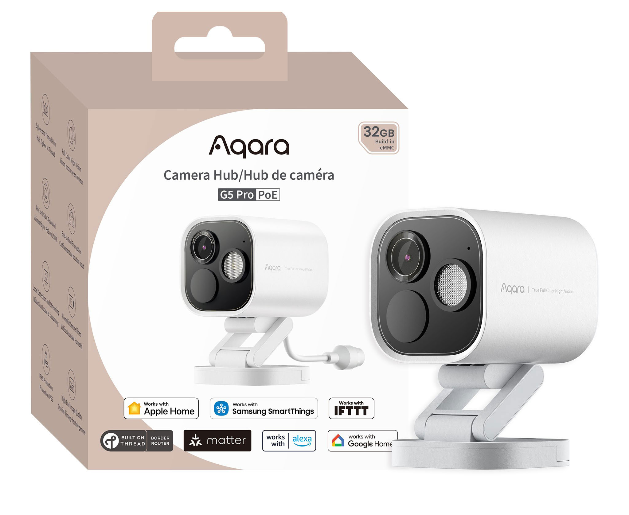Камера Хаб G5 Pro повністю сумісна з HomeKit Secure Video. Це перша камера Aqara, яка має вбудоване шифрування пам’яті eMMC, що дозволяє зберігати дані локально або створювати резервні копії на NAS, а також у хмарних сховищах Aqara та Apple. Вона підтримує наскрізне шифрування: ваші записи повністю захищені, і доступ до них мають лише ви або члени вашої родини.