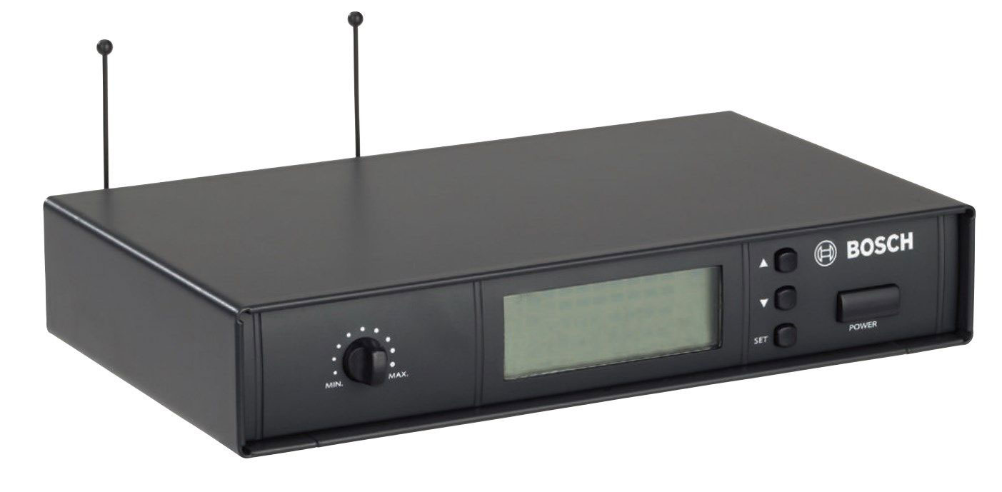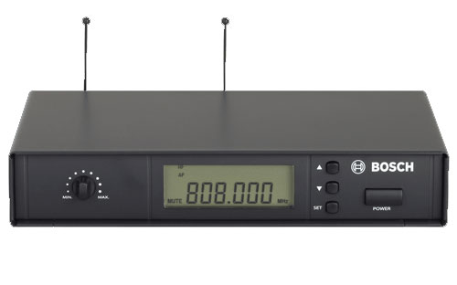 Приймачем бездротового мікрофона BOSCH MW1-RX-F5 використовується діапазон ультрависоких хвиль (722-746 МГц), що призводить до скорочення перешкод. У робочому діапазоні пристрою розташовується 193 частотних канали, що забезпечує постійний і якісний прийом сигналу.