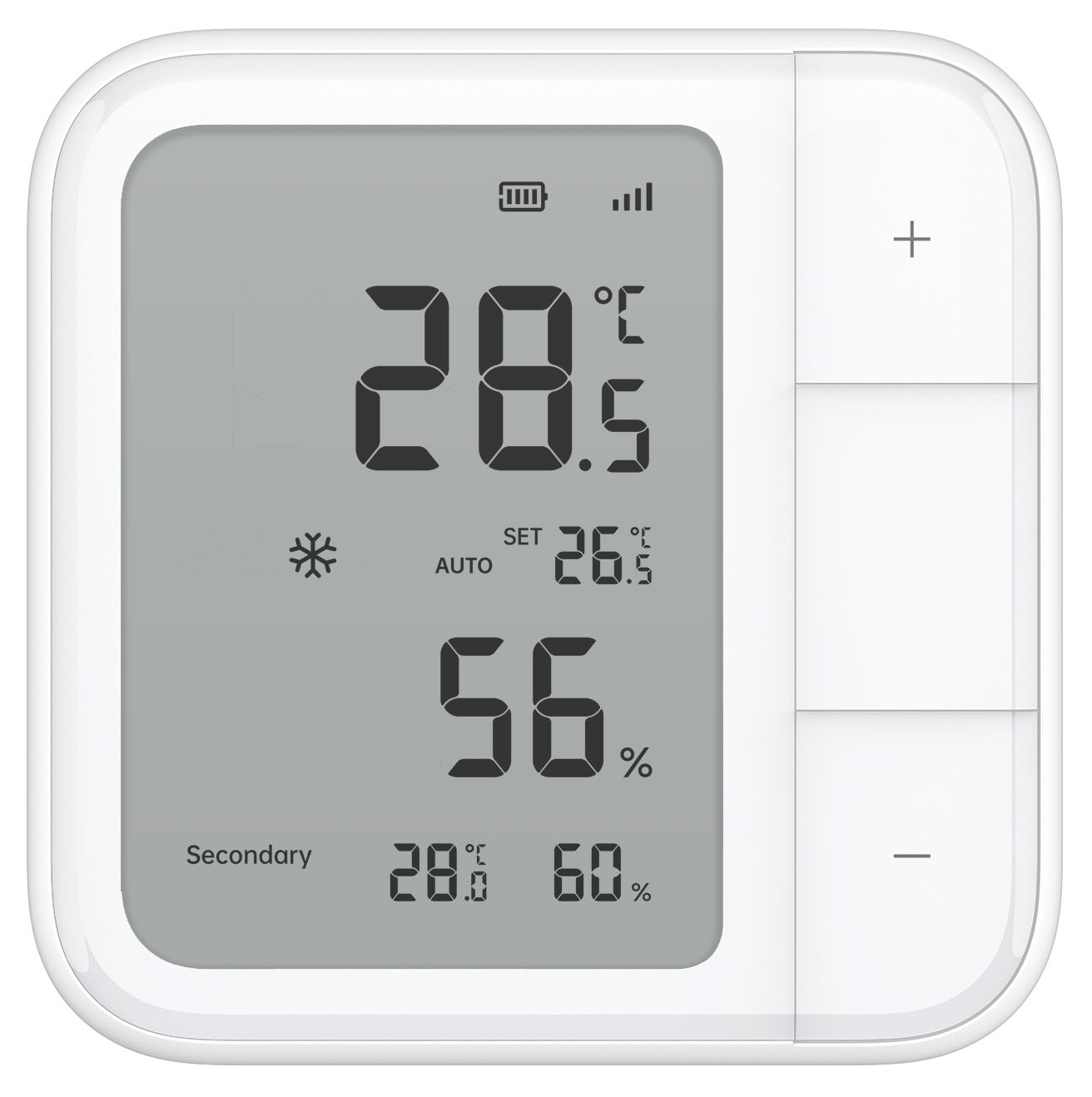 Високоточний датчик з 3,4-дюймовим РК-екраном контролює температуру та вологість в режимі реального часу. Підтримуючи Zigbee та Thread, він інтегрується з екосистемами сторонніх виробників або підключається через хаб Aqara для розширених функцій, таких як дистанційне керування HVAC. Завдяки 3 налаштовуваним кнопкам для до 9 дій, він підвищує комфорт, енергоефективність та автоматизацію розумного будинку.