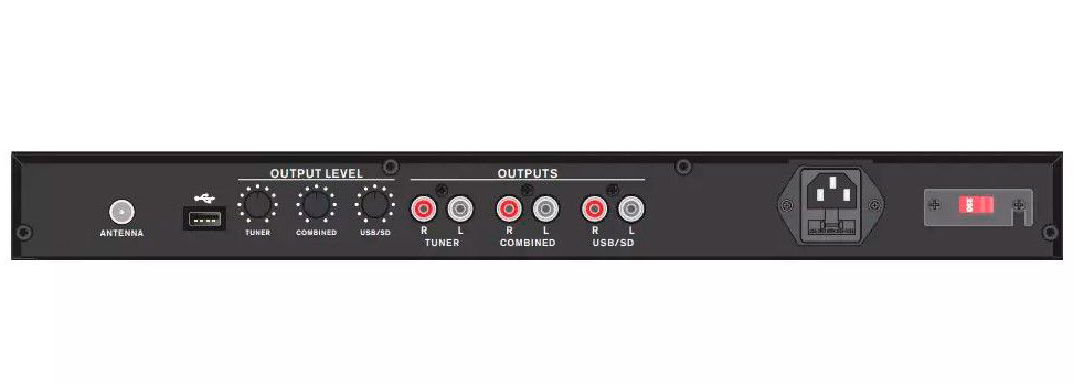 Джерело фонової музики складається з SD / USB-плеєр і радіо тюнера FM / AM з цифровим управлінням в компактному корпусі висотою 1U, 19 ". Він забезпечує багатогодинну безперервну роботу в професійних системах, і, завдяки відсутності рухомих частин, більш довгий термін служби. Зазвичай використовується в магазинах, супермаркетах, ресторанах, барах, їдальнях, спортивних і виставкових залах і в інших місцях, де фонова музика створює потрібну атмосферу.