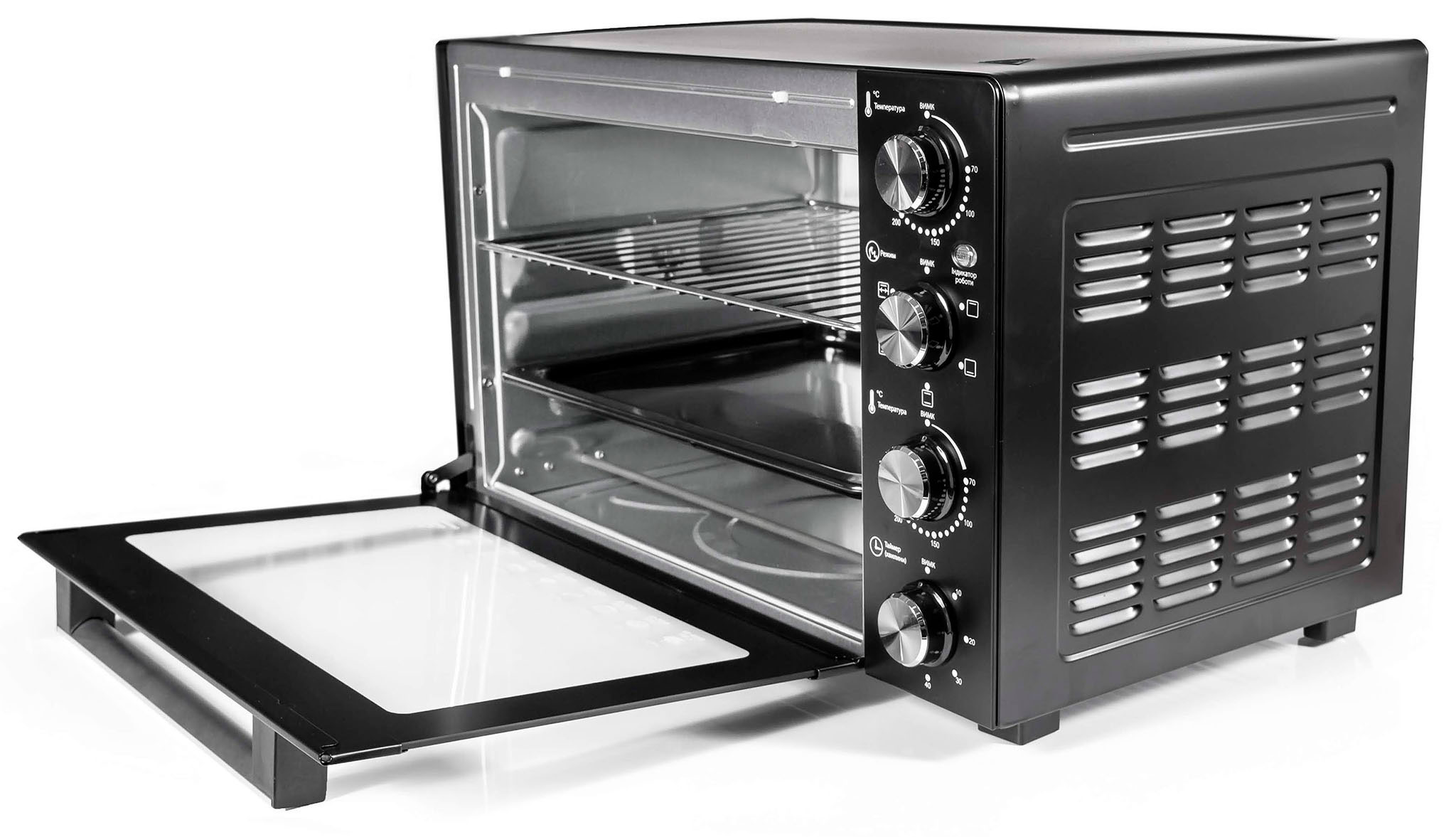 Механічне керування з трьома режимами нагріву робить використання печі максимально зрозумілим. Вам не потрібно витрачати час на вивчення складних інструкцій. Просто виберіть потрібний режим, встановіть температуру та час, і насолоджуйтесь результатом!