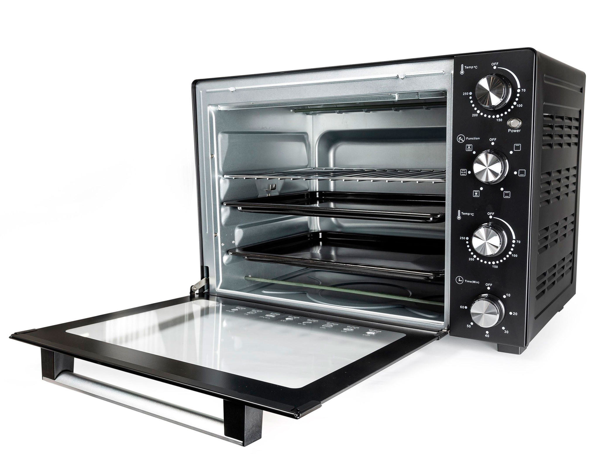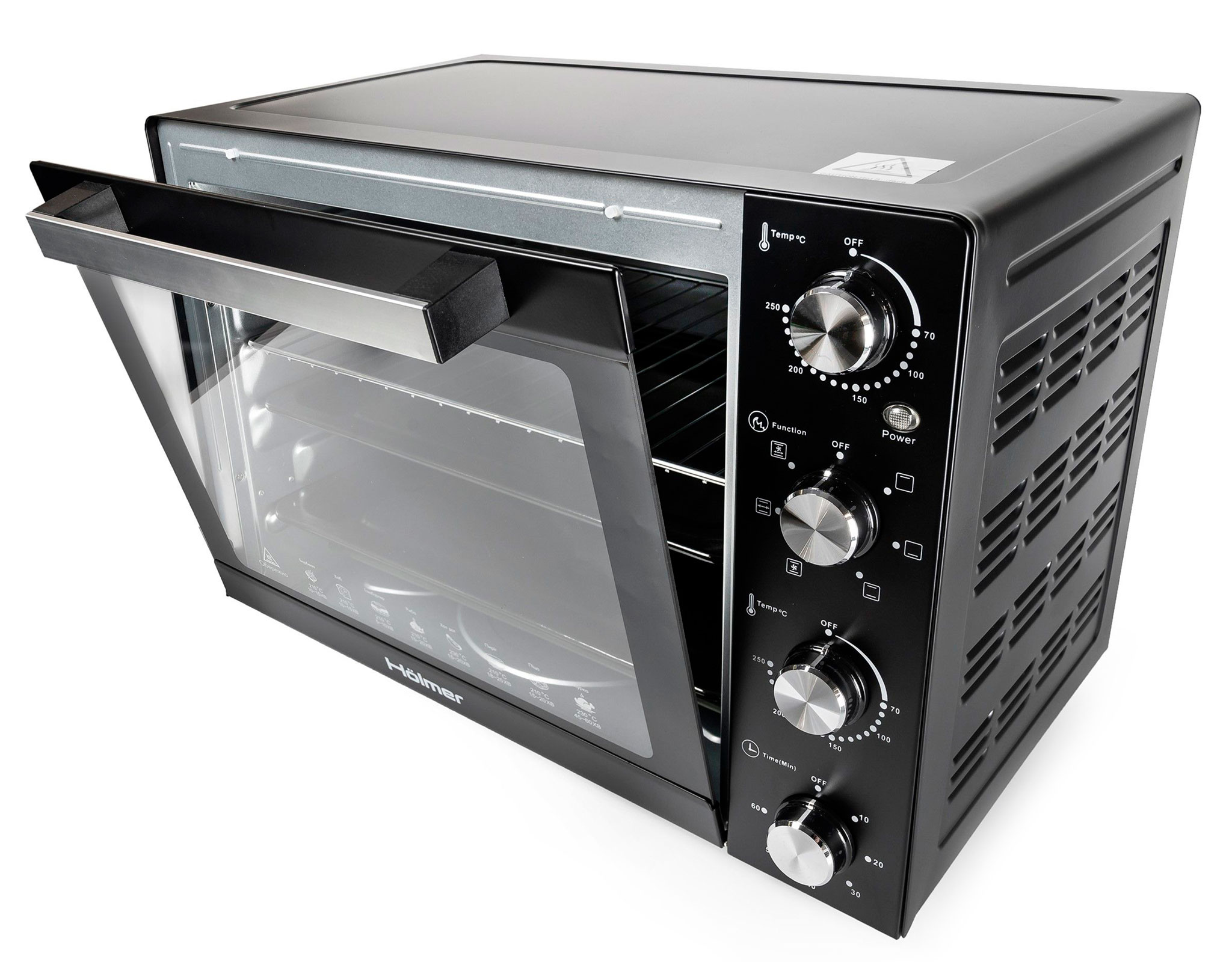 Опис електричної печі Hölmer HEO-162CRL Hölmer HEO-162CRL- це дуже містка модель електричної печі, із великим об'ємом камери 61 літр і потужністю 1900 Вт. Дозволяє готувати на трьох рівнях. Оснащена внутрішнім підсвічуванням, механічним управлінням і таймером (з автовідключенням), а також, різноманітними режимами приготування на вибір: гриль, вертел, запікання, випічка. Сучасна елегантність Стильний та лаконічний дизайн Hölmer HEO-162CRL доповнить ваш кухонний інтер'єр та органічно впишеться у будь-який простір. Функціональні особливості моделі та механічне управління, забезпечують просте та комфортне користування технікою, заощаджуючи ваші сили та час. Підсвічування та нагрівальні елементи Вбудована підсвітка всередині печі надасть можливість спостереження за процесом приготування. Завдяки її наявності, вам не доведеться відкривати дверцята, порушуючи температурний режим. Усередині корпусу печі, на внутрішній стінці, встановлена лампа підсвічування, яка висвітлює світлом всю камеру. Світильник стійкий до