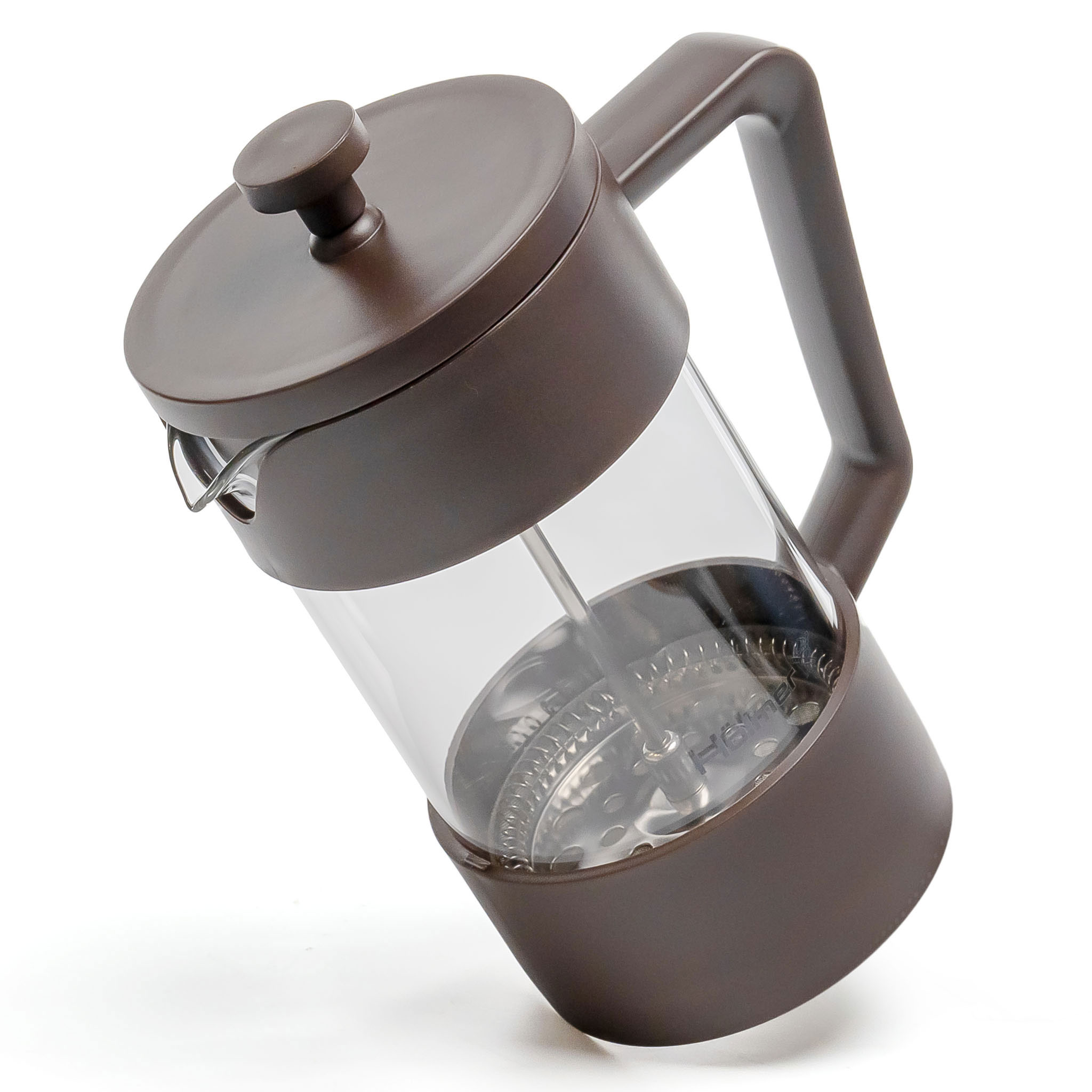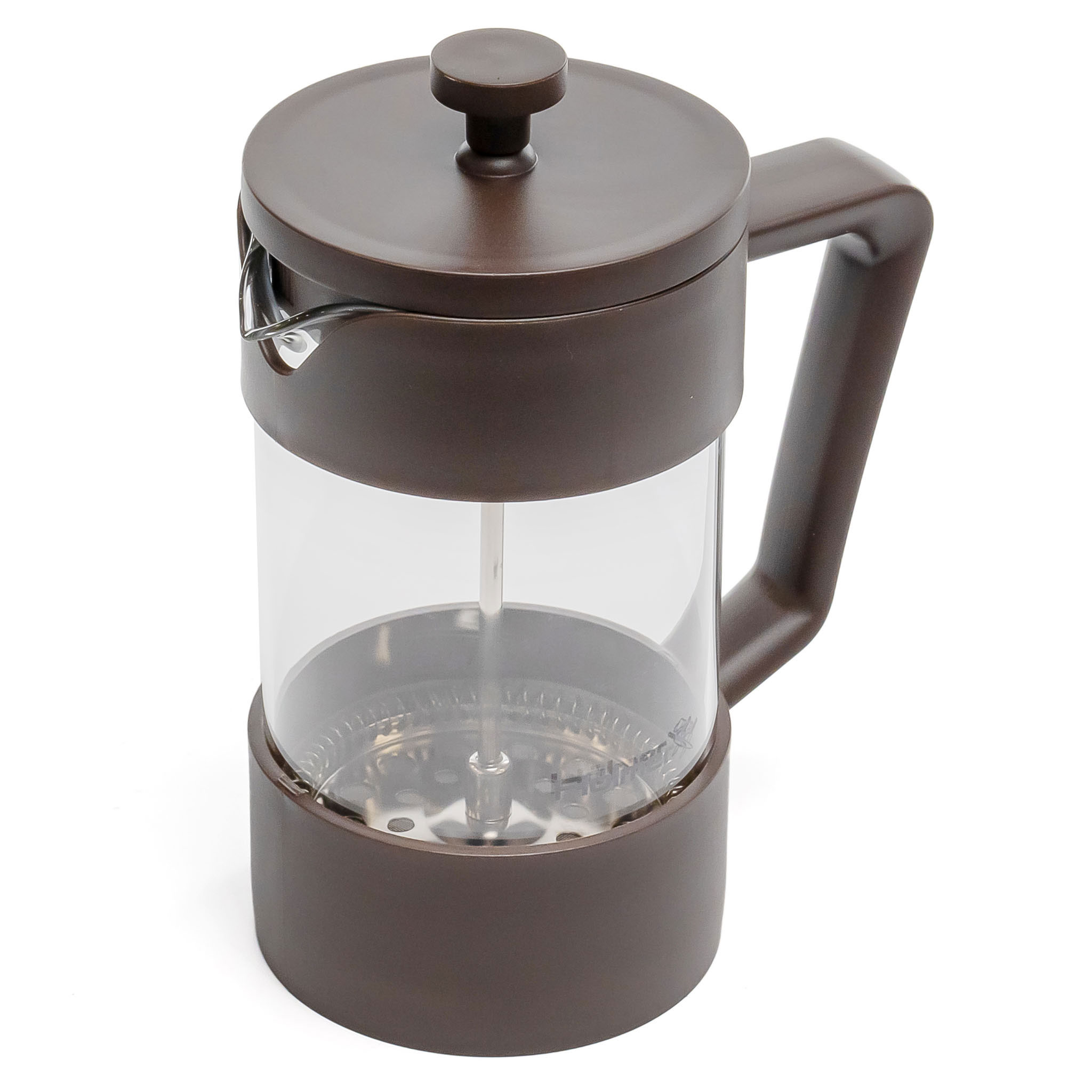 Френч-прес об'ємом 600 мл у стильному коричневому дизайні. Боросилікатне скло та пластик забезпечують високу міцність і термостійкість. Завдяки можливості миття в посудомийній машині, догляд за ним простий та зручний.
