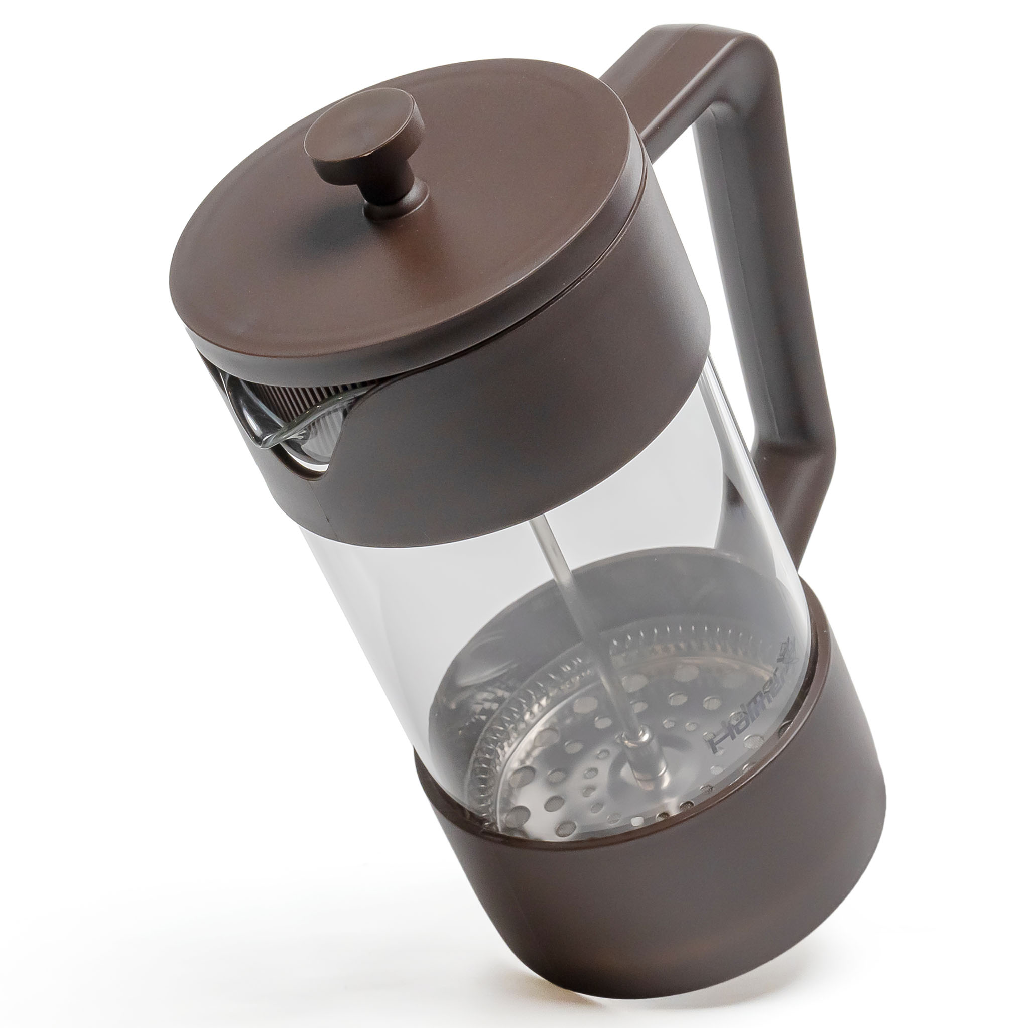 Для великих компаній та справжніх любителів кави, френч-прес об'ємом 1000 мл стане відмінним вибором. Виготовлений з боросилікатного скла, він витримує температури до +230°C. Колір: коричневий. Простий у догляді, підходить для миття в посудомийній машині.