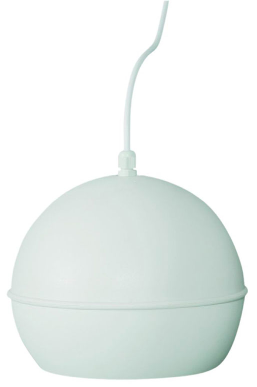 Підвісний гучномовець для високих стель 4-5 метрів. Чудово вписується в різноманітний дизайн приміщень завдяки сферичній формі. Вдале рішення для приміщень без декоративних стель. Гучномовець підвішується до основної стелі та звисає на власному кабелі.
