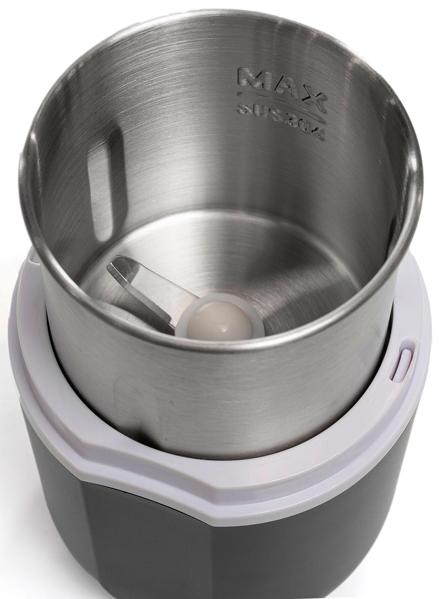 Кавомолка має леза з нержавіючої сталі, які забезпечують рівномірне подрібнення кави та спецій. Це дозволяє вам приготувати ароматний напій з насиченим смаком або додати пряного смаку улюбленим стравам.