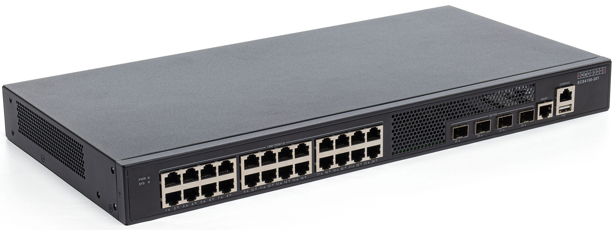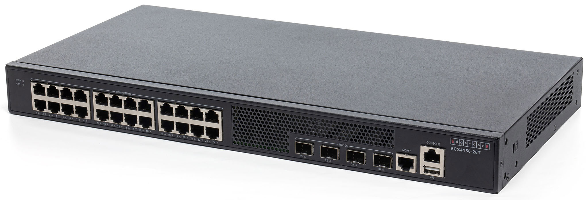 Комутатор Edgecore ECS4150-28T — це комутатор доступу Gigabit Ethernet із чотирма висхідними лініями зв’язку 10G SFP+. Комутатор ідеально підходить для Інтернет-провайдерів (ISP) і кількох системних операторів (MSO), які бажають надати домашнім користувачам послуги Triple-Play із пропускною здатністю до Гігабіт.