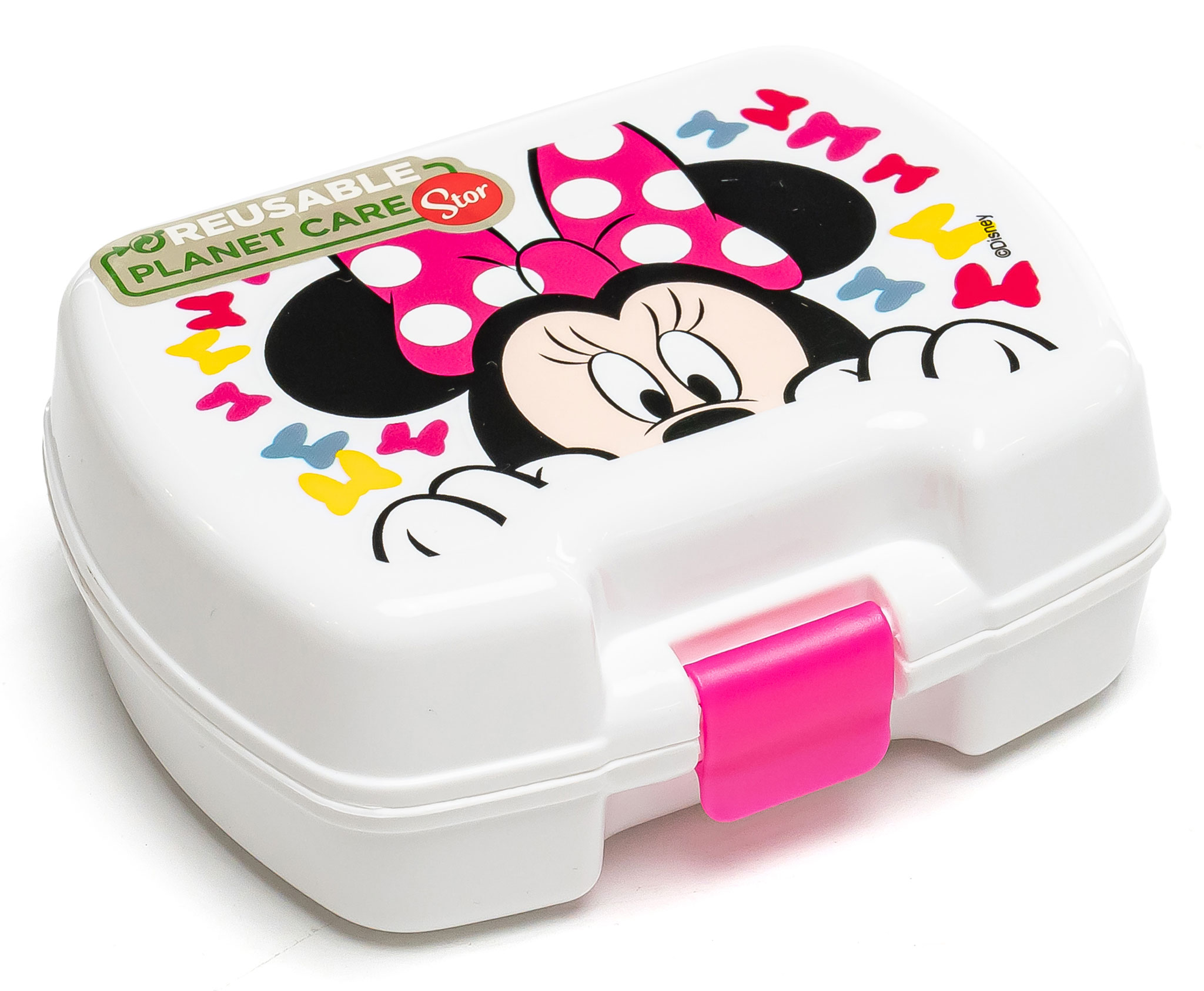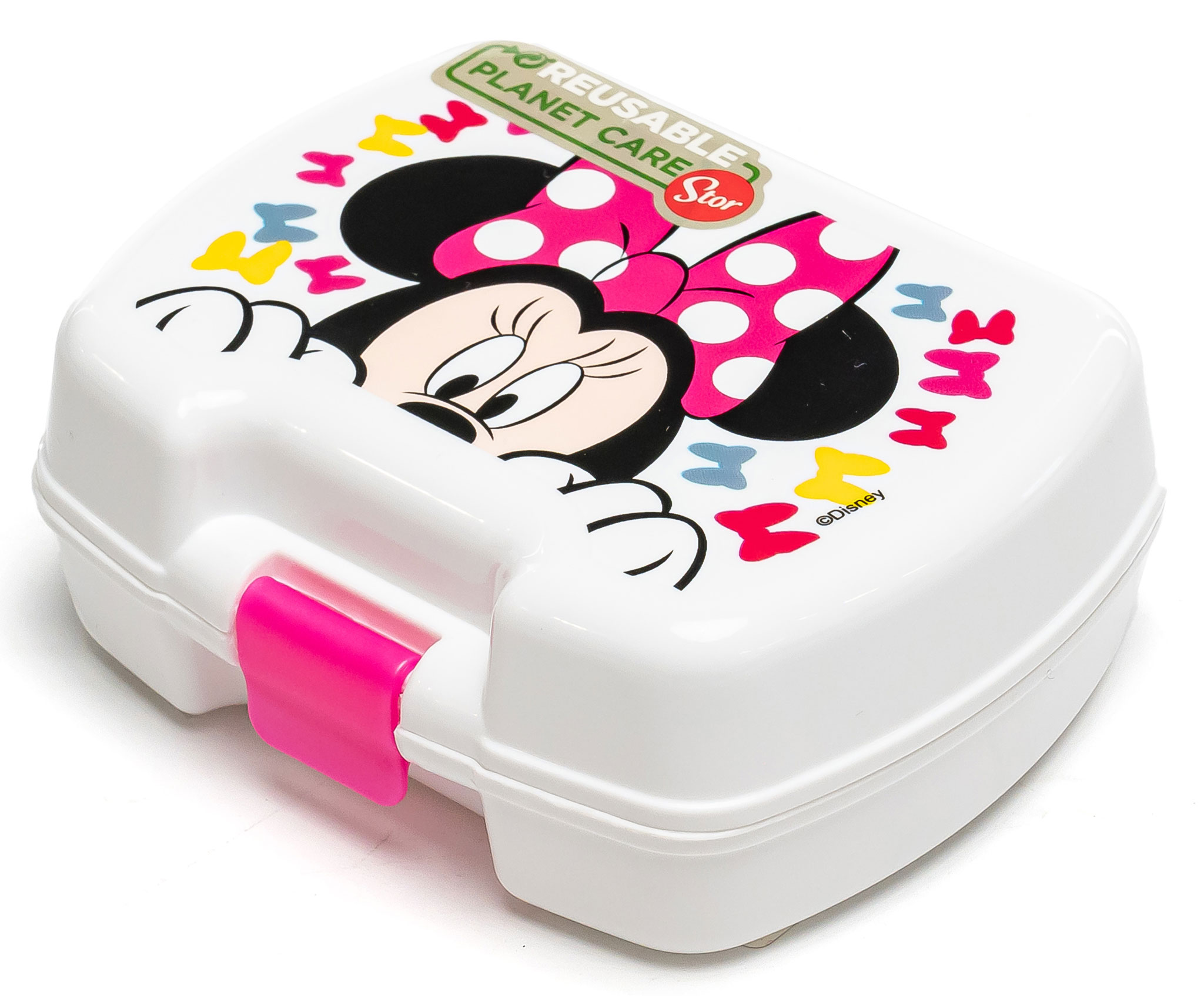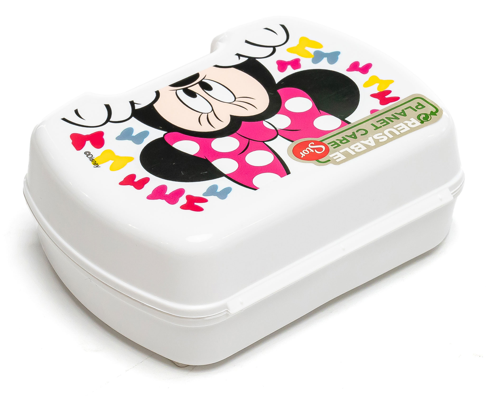 Ланч-Бокс для дітей та для використання у школі. Виготовлено з міцного матеріалу, який витримає легкі падіння та інші неприємні ситуації. Зображено популярну героїню мультфільмів - Мінні Маус. Можливе альтернативне використання у якості коробки-переноски для іграшок.