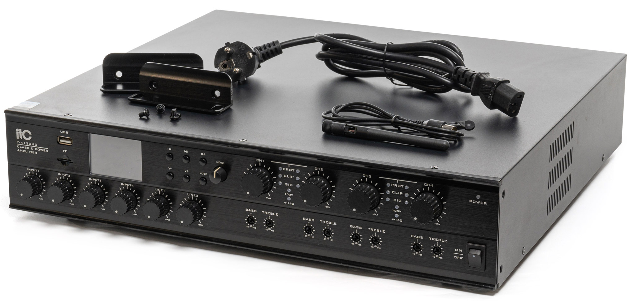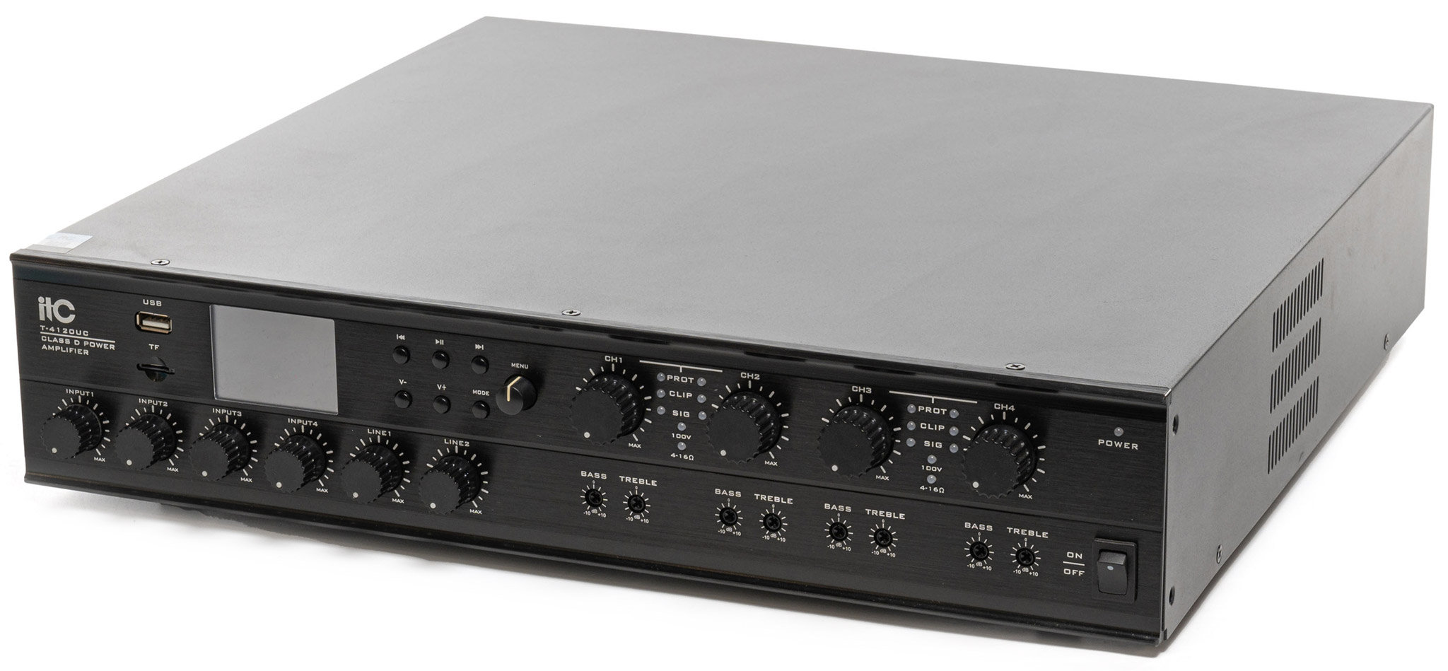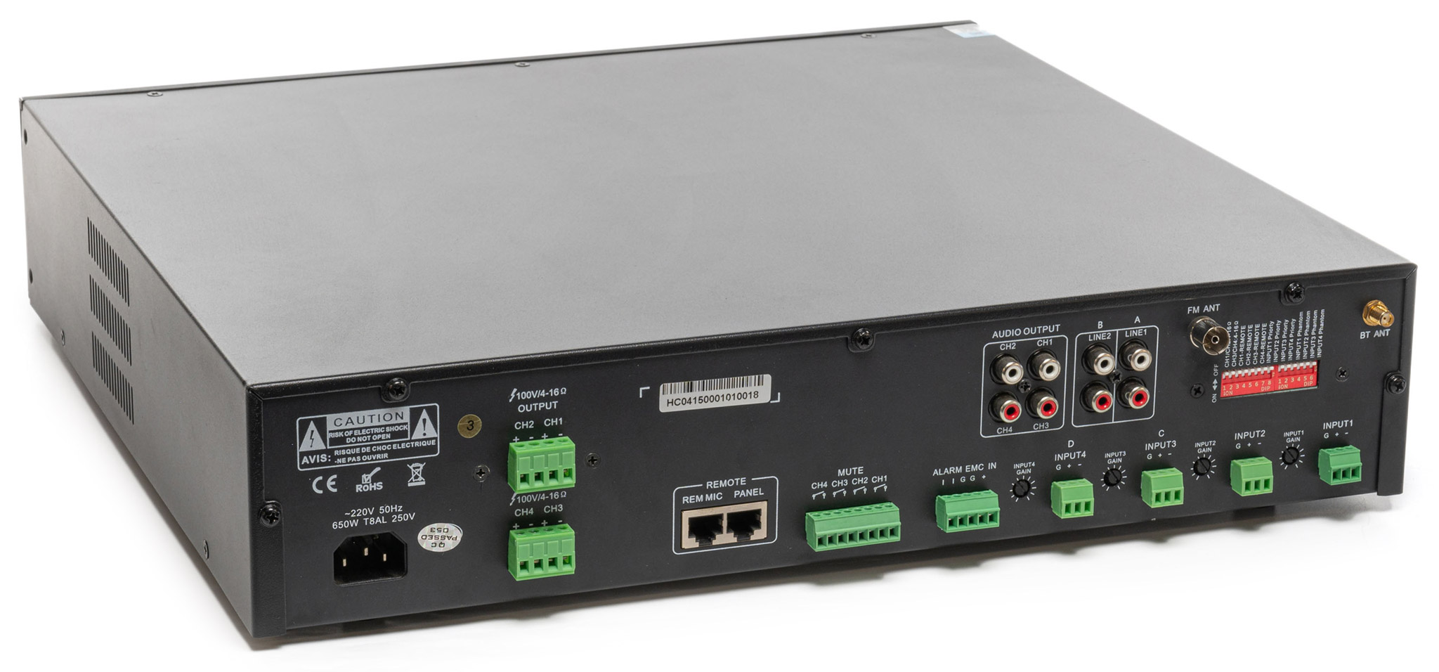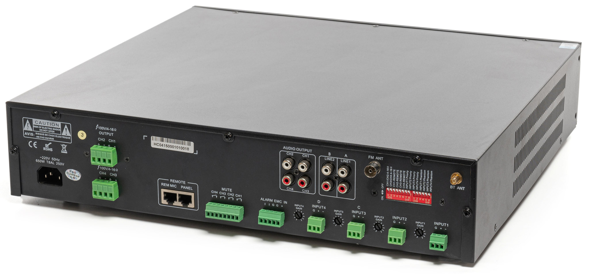 Для зручності керування використовується виносна панель регулювання гучності. Підходить для клубів, стадіонів, торгових центрів та інших систем трансляції, де потрібний багатоканальний підсилювач великої потужності.