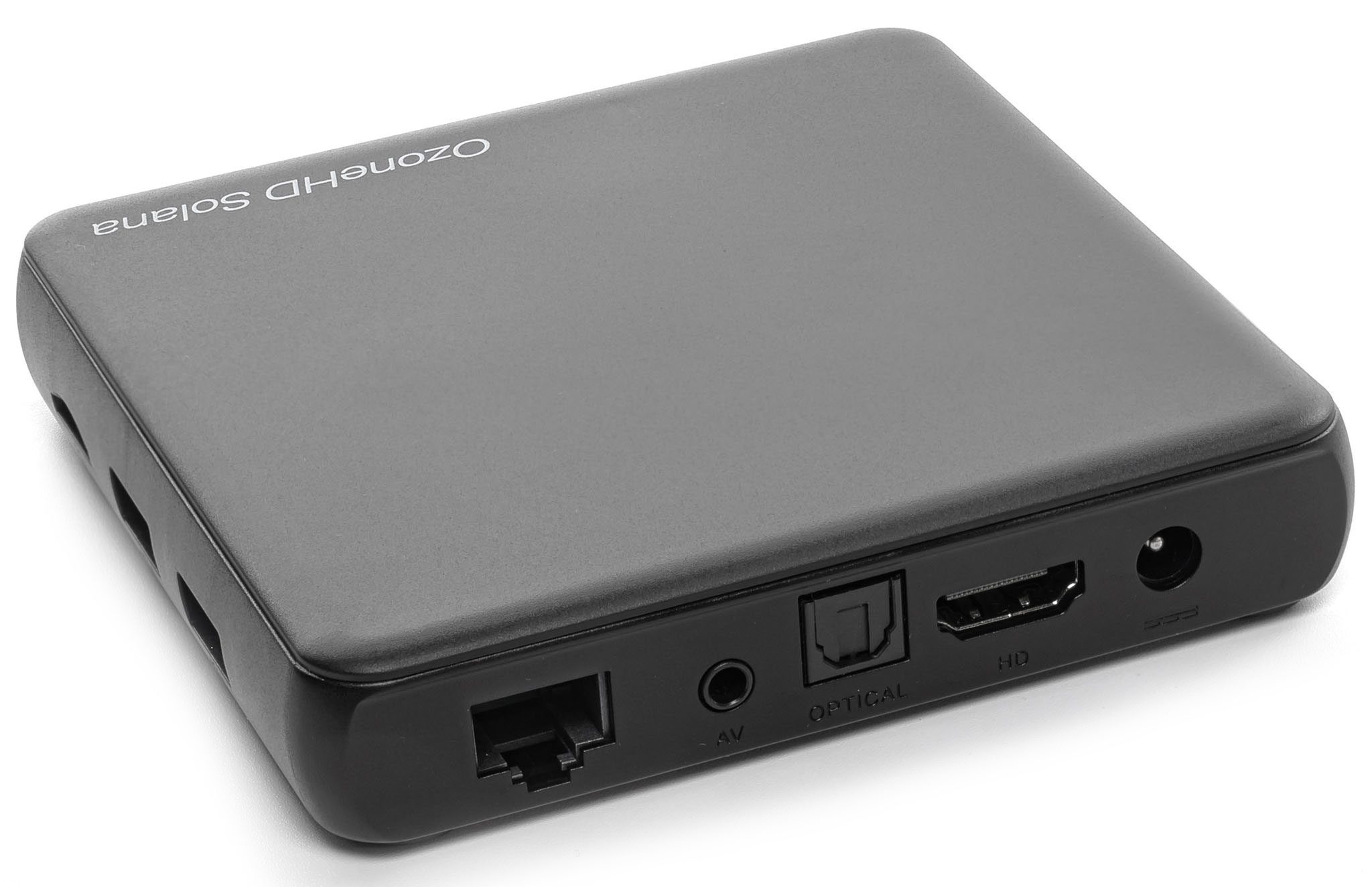 Медіаплеєр OzoneHD Solana має зручні роз'єми, включаючи AV і оптичний SPDIF, що дозволяє підключати зовнішні аудіосистеми та насолоджуватися якісним звуком. Крім того, він має живлення DC 5V/2A і LED-індикатор, який вказує стан пристрою.