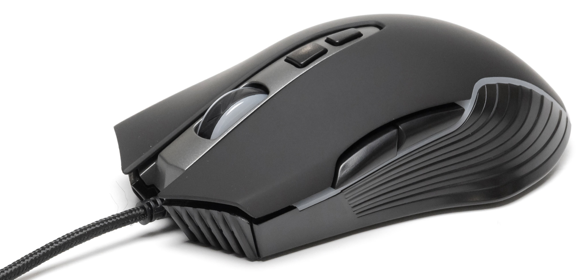 M-03GS має ергономічний розмір (125 x 68 x 43 мм) і значну вагу (122 г), що забезпечує стабільність. Soft-Touch покриття та прогумоване колесо прокрутки гарантують комфорт навіть після багатьох годин гри. Ресурс основних клавіш - 5 мільйонів натискань.