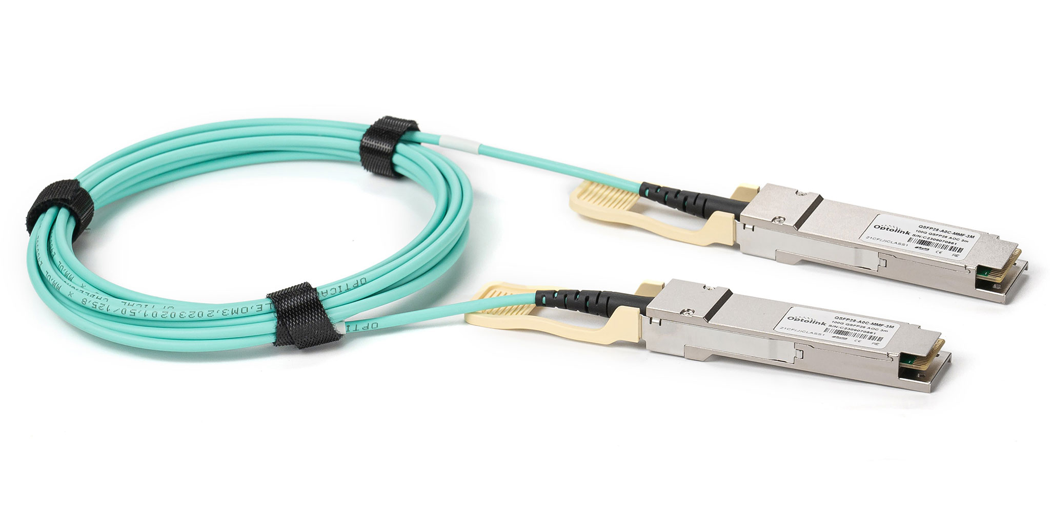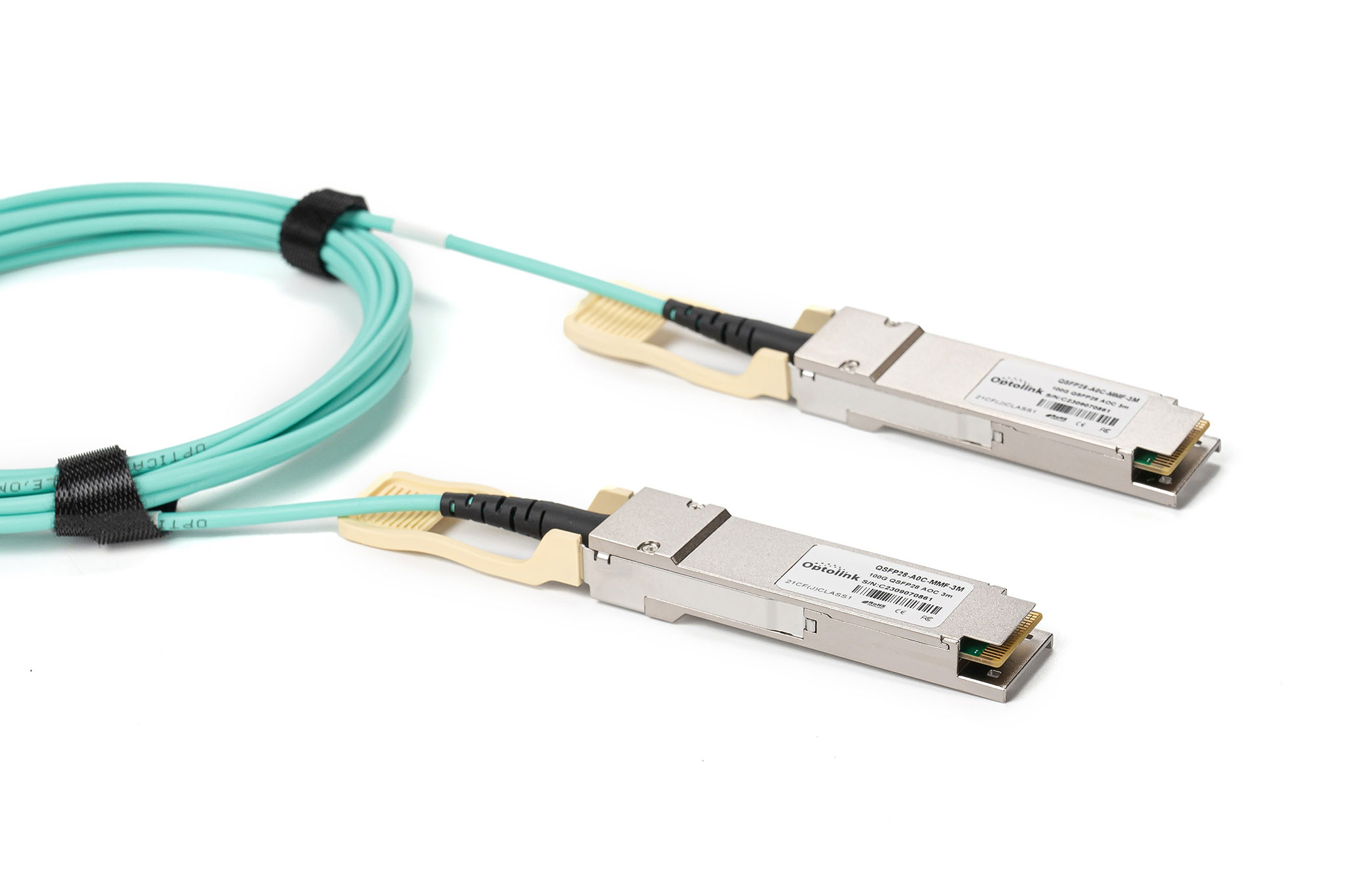 Він забезпечує повнодуплексну роботу і підтримує відстань до 150 метрів по оптоволокну OM4. QSFP28-AOC-MMF-1M можна використовувати в якості надійної альтернативи мідним кабелям прямого підключення (DAC), забезпечуючи поліпшену цілісність сигналу, мала вага, виняткову вартість і продуктивність.