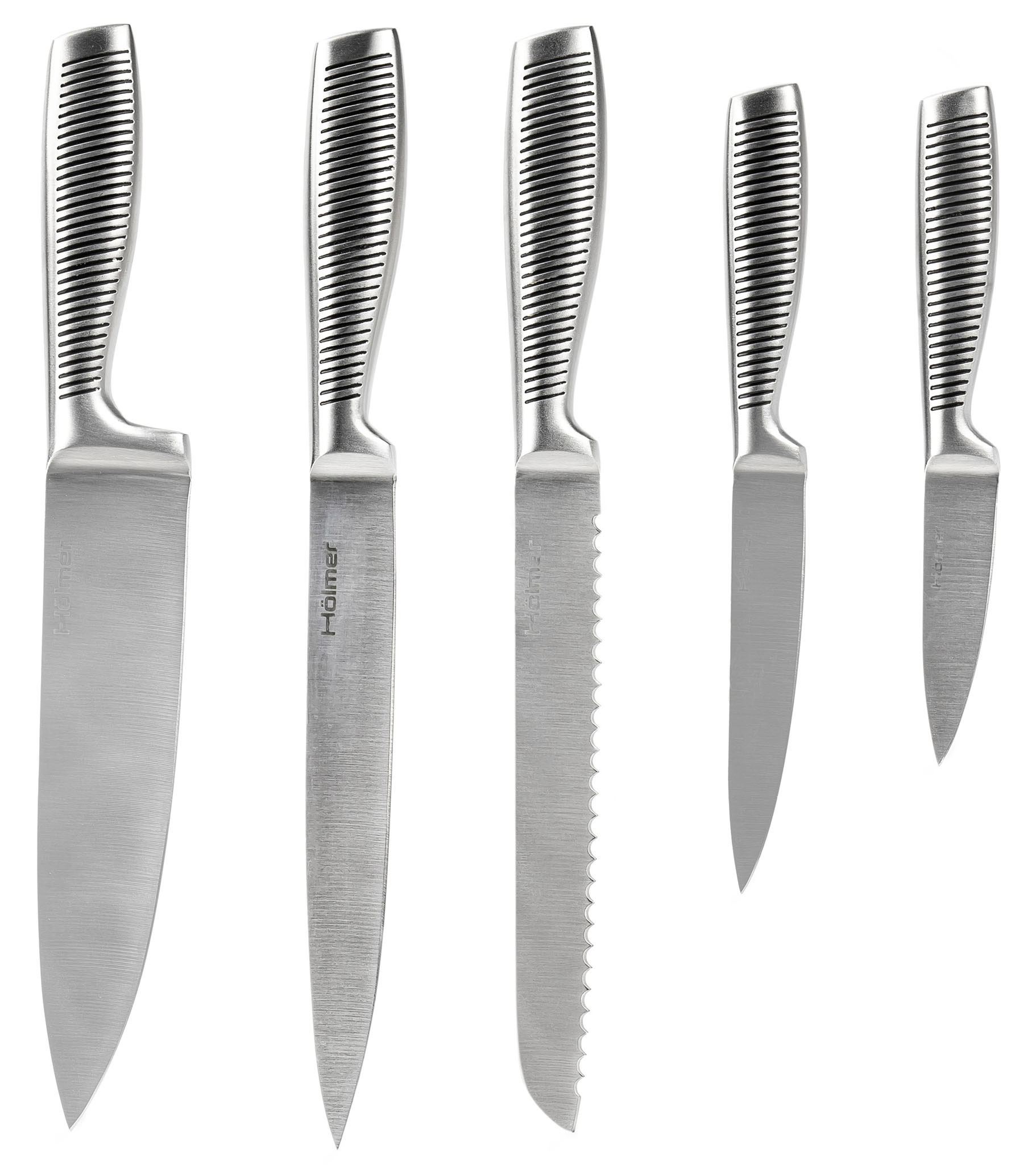 Ножі з набору Hölmer Stone мають сучасний дизайн, анатомічну ручку, що забезпечує комфорт і безпеку під час роботи. Набір ножів Hölmer Stone виготовлений з високоякісної сталі. Ножі Stone мають ідеальний кут заточування і не вимагають додаткових заточок протягом довгого часу. Підходять для інтенсивного щоденного використання, зберігаючи ідеальний зовнішній вигляд протягом усього терміну експлуатації.