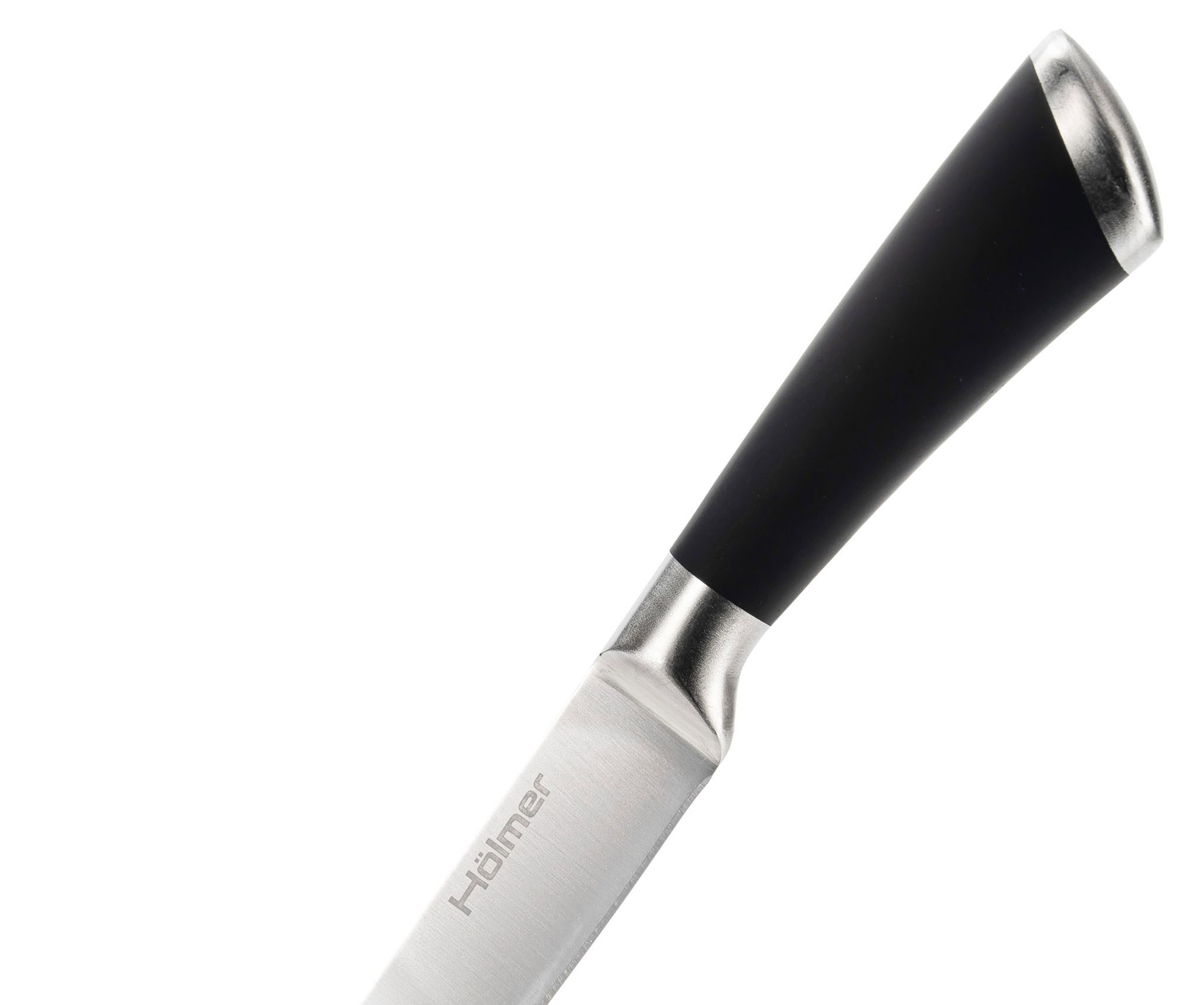 Ножі з набору Hölmer Chic мають сучасний дизайн, анатомічну ручку, що забезпечує комфорт і безпеку під час роботи. Набір ножів Hölmer Chic виготовлений з високоякісної сталі. Ножі Chic мають ідеальний кут заточування і не вимагають додаткових заточок протягом довгого часу. Підходять для інтенсивного щоденного використання, зберігаючи ідеальний зовнішній вигляд протягом усього терміну експлуатації.