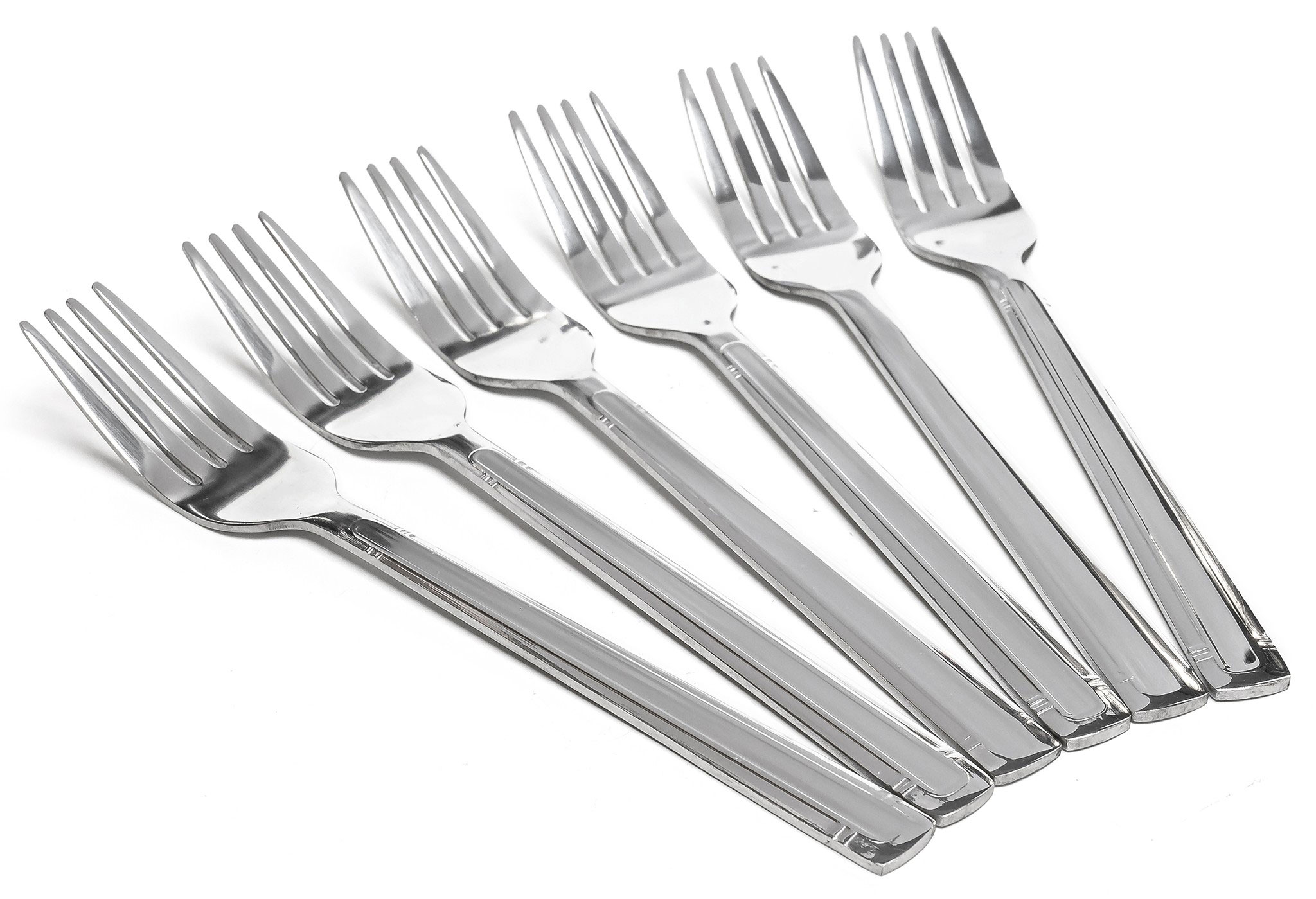 Виделки мають дзеркальне полірування, яке додає елегантності та робить їх ідеальними для будь-яких нагод – від звичайних сімейних обідів до святкових застіль. Завдяки зручним ручкам, виконаним з нержавіючої сталі, ви зможете насолоджуватися комфортом під час кожного прийому їжі.