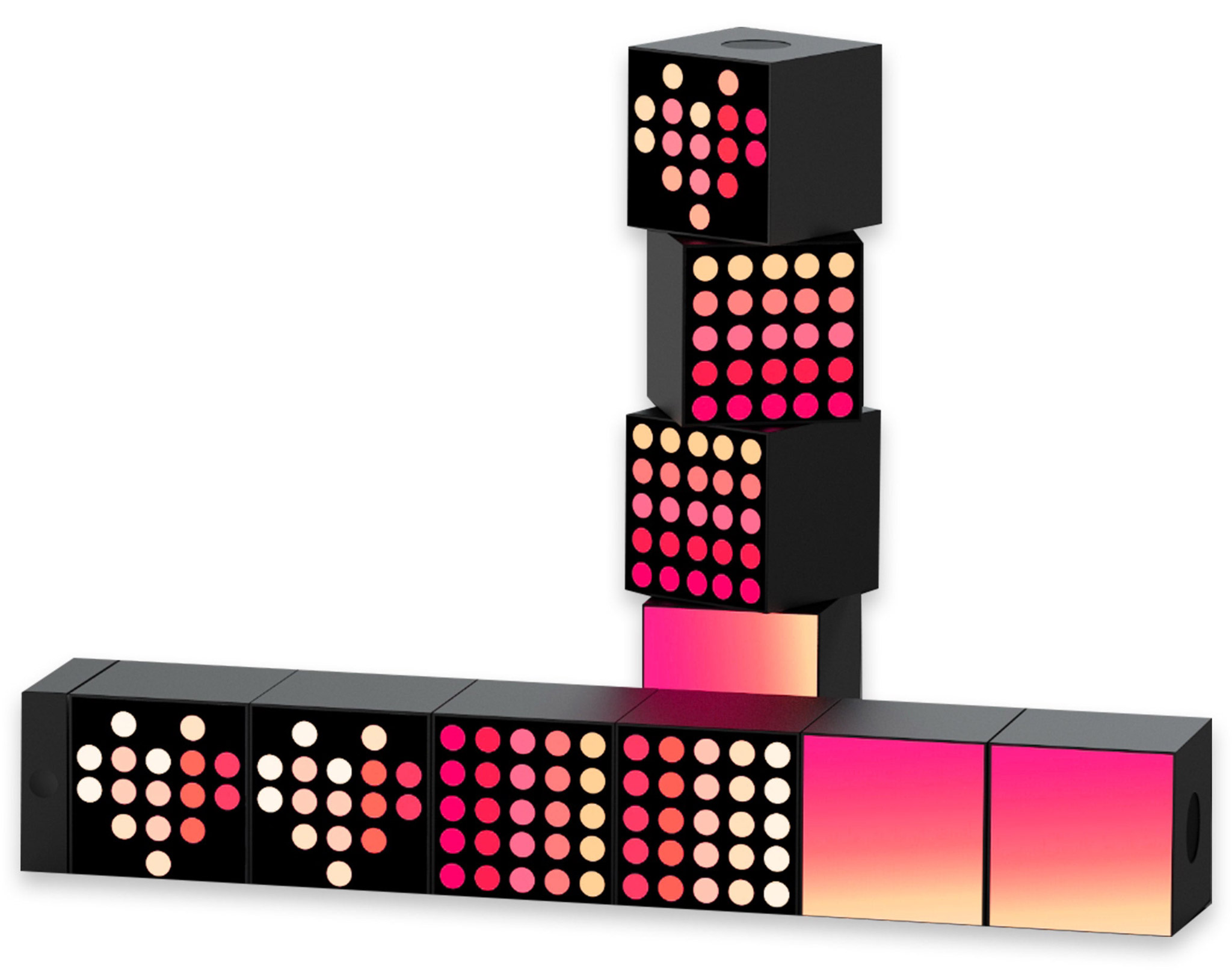 Заряджений RGB-кольорами, підтримує динамічні світлові сцени, інтеграцію з розумним домом і модульну побудову: базовий блок забезпечує живлення та керування, до нього можна підключити додаткові куби для масштабування ефекту. Прожектор-версія має вузький фокусований промінь (~15°), який дозволяє точно підсвітити стену, предмет або створити світловий акцент.