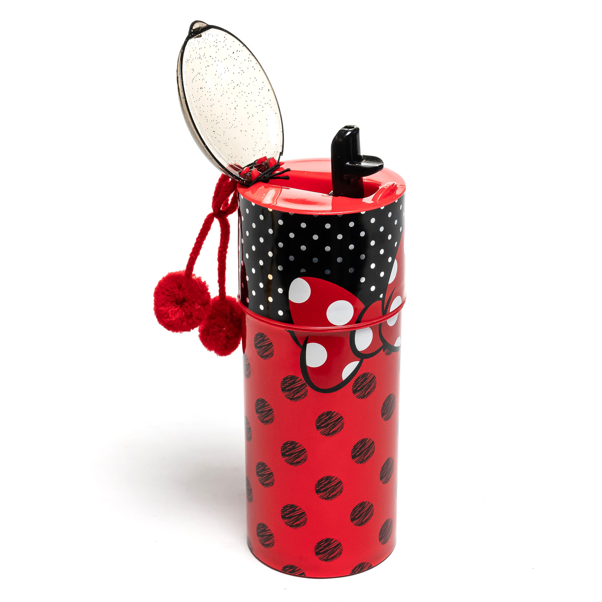 Зручна кришка вбереже напій від проливання. Дизайн із брелоком у вигляді червоних помпончиків, а також із зображенням бантика головного персонажа допоможе зануритися в атмосферу мультика.