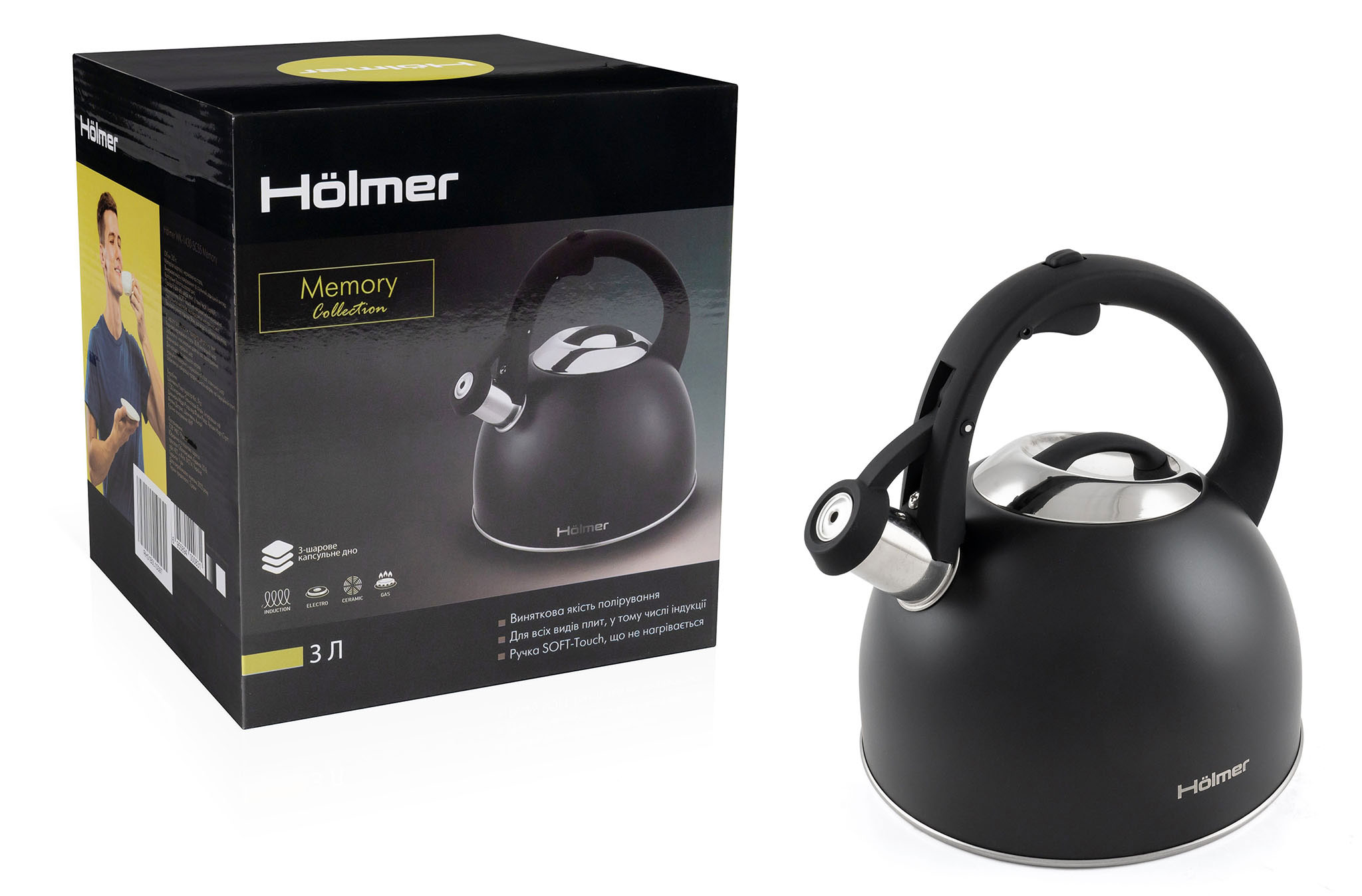 Класичний, елегантний та звичайний у використанні чайник зі свистком Hölmer призначений для тих, хто любить бездоганний зовнішній вигляд.
