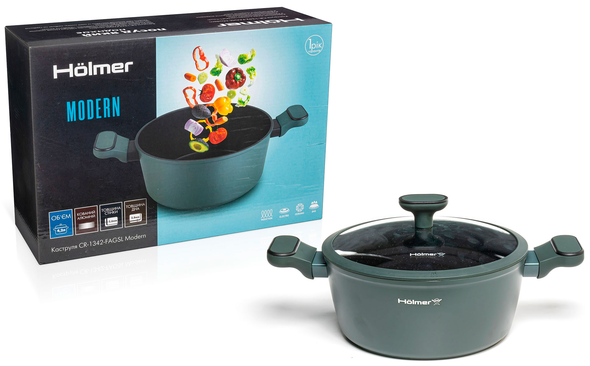 Каструля Hölmer CR-1342-FAGSL Modern поставляється з 1-річною гарантією, що свідчить про високу якість та надійність цього виробу.