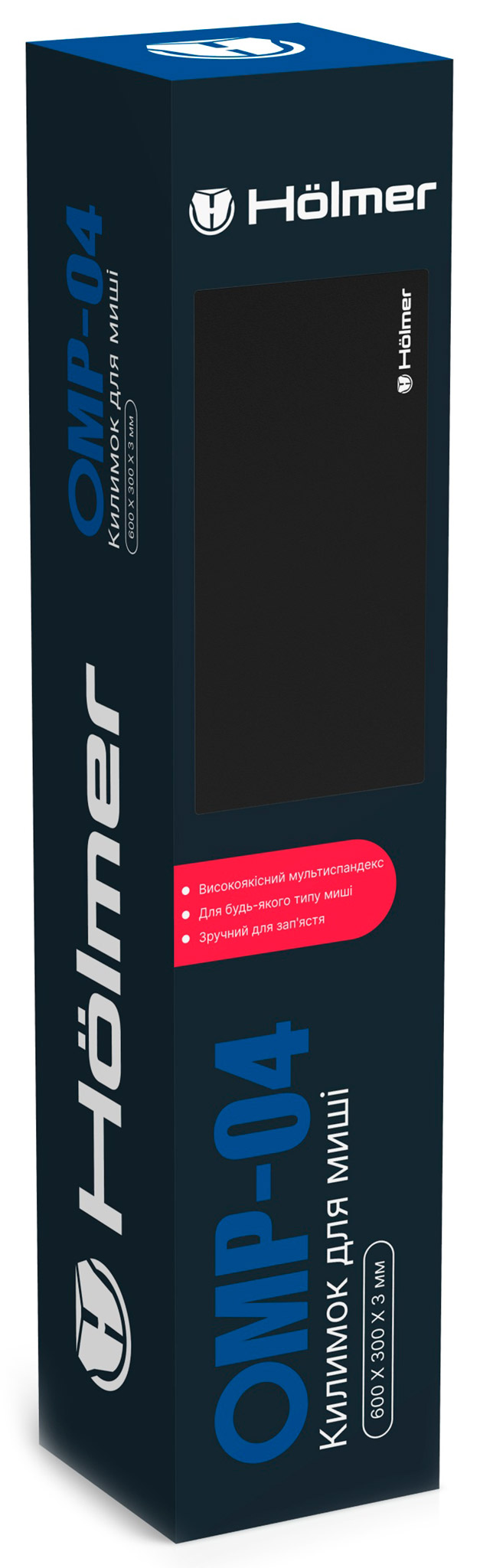 Hölmer OMP-04 - це універсальний настільний килимок (Desk Mat), який пропонує величезний простір для організації вашого робочого місця. Завдяки розміру 600 х 300 мм, він легко вміщує і клавіатуру, і мишу, забезпечуючи єдність стилю, комфорт та стабільність для обох пристроїв.
