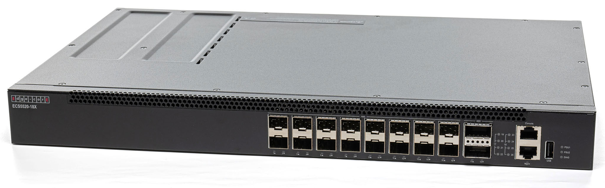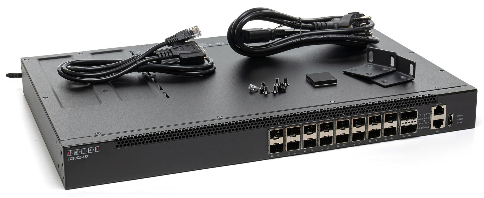 ECS5520-18X это высокопроизводительный управляемый L2+/Lite L3 коммутатор с небольшим количеством 10GbE и двумя портами 40GbE. Коммутатор позиционируется производителем как идеальное решение для уровня агрегации операторов / предприятий или работы в качестве ToR-коммутатора в центрах обработки данных.