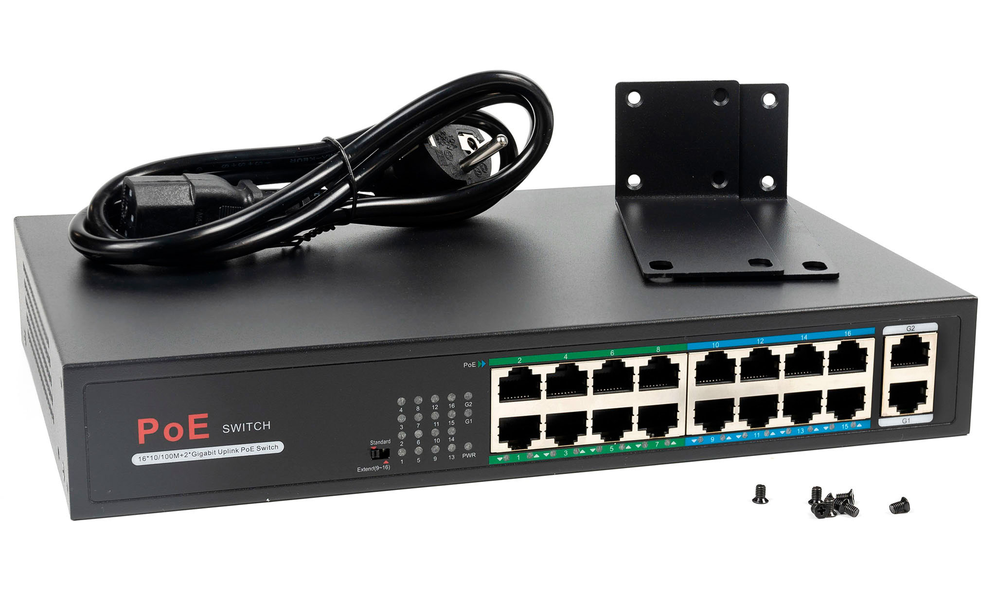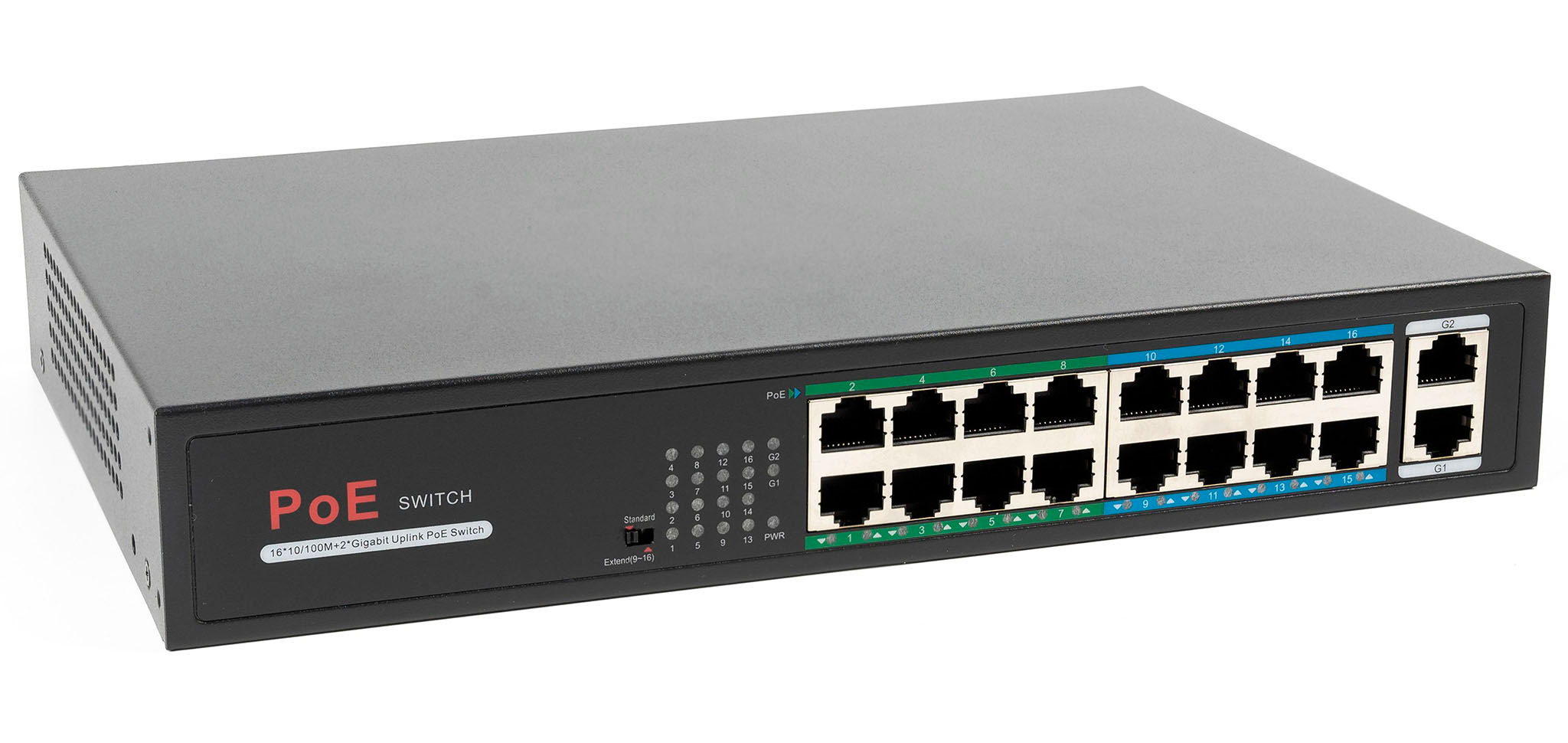 RS1016P - это портативный PoE-коммуникатор, разработанный ONV. Имеет 16 портов 100 М RJ45 и 2хGigabit uplink порта. Порт 1-16 поддерживает IEEE 802.3af / при стандартном блоке питания PoE, однопортовое PoE мощностью до 30 Вт. Общая мощность PoE составляет 200 Вт. В качестве устройства питания PoE он может автоматически обнаруживать и распознавать устройства, принимают PoE. Подходит коммутатор для гостиниц, кампусов, фабричных общежитий, а также для малых и средних предприятий для создания экономической и эффективной сети.