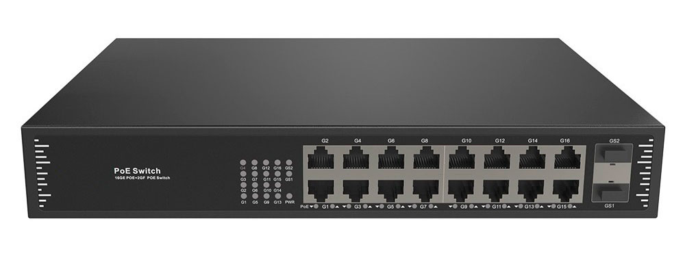 RCI RS33016PFB — це повноцінний гігабітний волоконно-оптичний комутатор PoE, незалежно розроблений RCI. Він має 16*10/100/1000M портів RJ45 і 2*1000M SFP портів. Порти 1-16 можуть підтримувати IEEE 802.3af/при стандартному джерелі живлення PoE. Потужність одного порту PoE досягає 30 Вт, а максимальна вихідна потужність PoE становить 250 Вт.