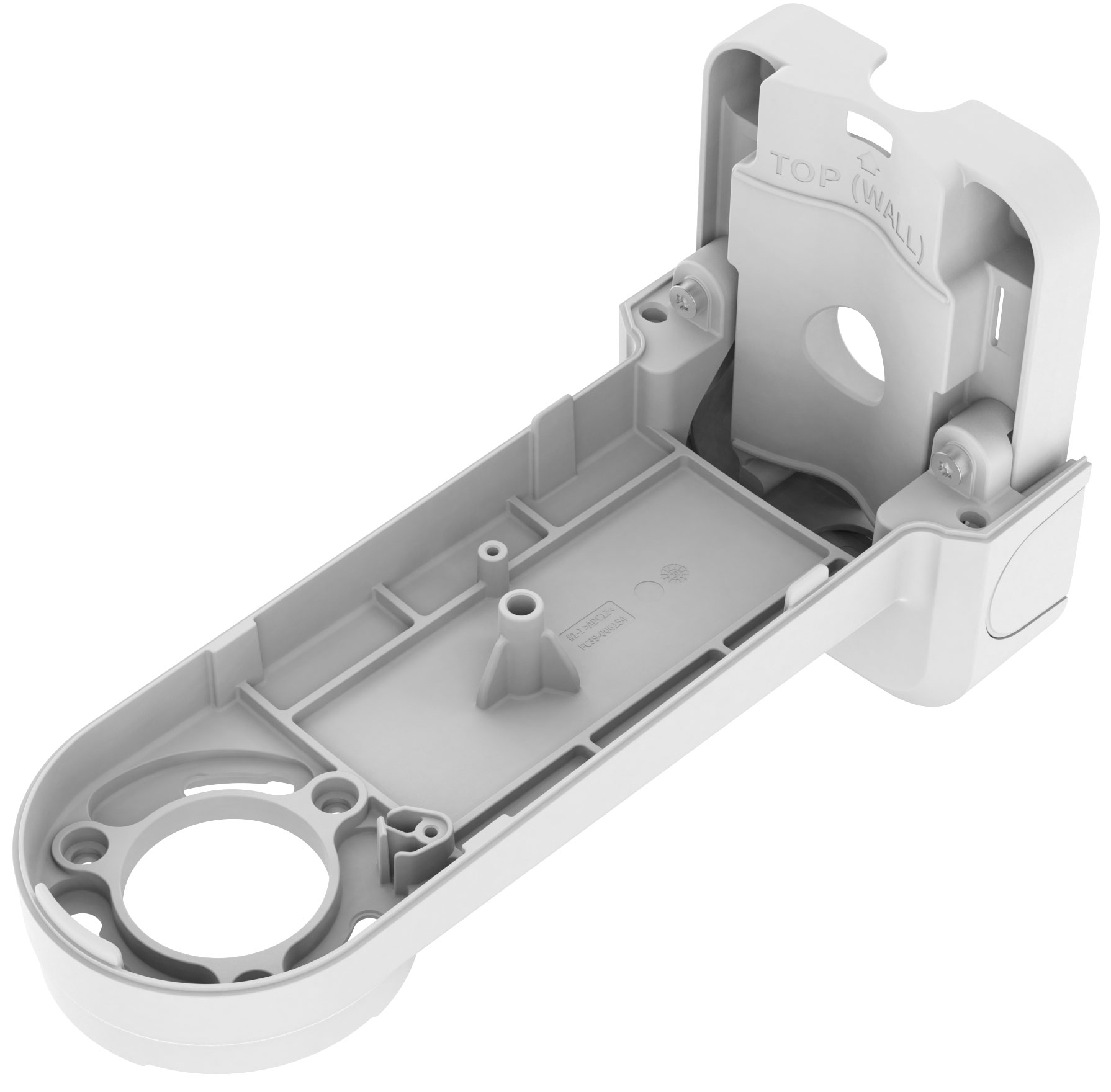 Міцний алюмінієвий корпус гарантує високу несучу здатність і стійкість до механічних навантажень. Білий колір за стандартом RAL9003 дозволяє органічно інтегрувати кронштейн у сучасні інтер’єри та фасади будівель, зберігаючи єдиний стиль системи відеоспостереження.