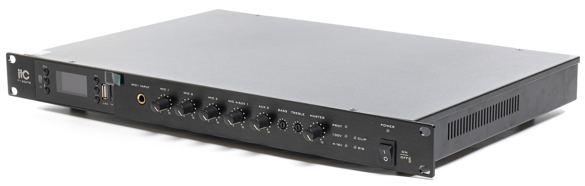 Підсилювач має 6 входів з незалежним регулюванням рівня, вбудований програвач аудіо файлів з USB накопичувача, SD карти і Bluetooth. Пріоритет вхідних сигналів і вхід ЕМС з найвищим пріоритетом, це дозволяє інтегрувати підсилювач з системами оповіщення про пожежу та надзвичайних ситуаціях.