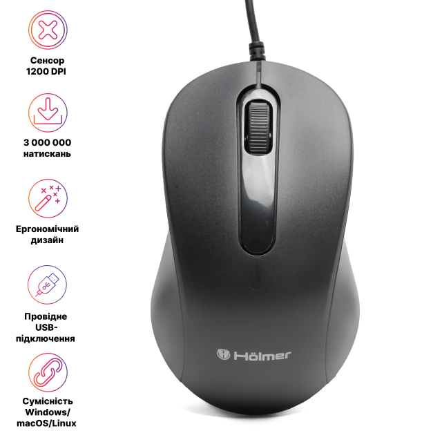 Миша Hölmer M-01OF - це втілення класичної надійності та функціональності. Якщо ви шукаєте простий, але високоякісний інструмент для щоденної роботи в офісі, навчання чи вдома, ця модель стане вашим ідеальним вибором. Ніяких батарейок, ніяких затримок - лише стабільна робота, до якої ви звикли.
