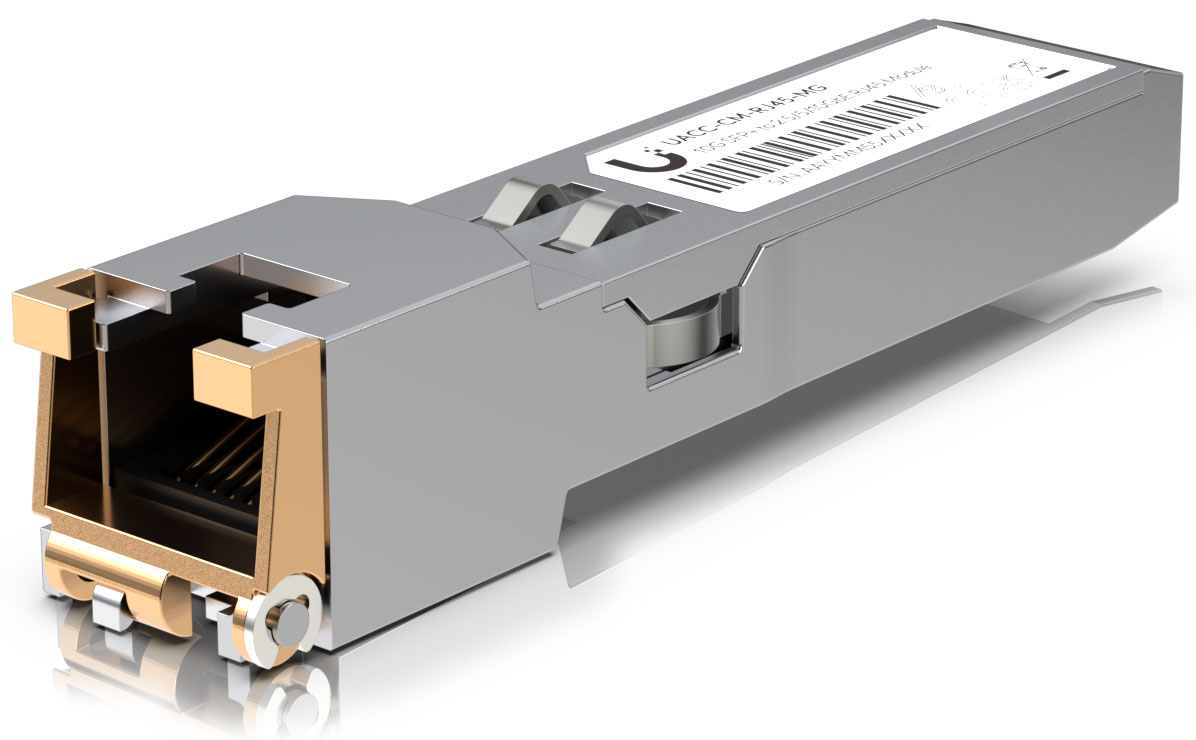 UACC-CM-RJ45-MG - це 10-гігабітний SFP+ мідний модуль з роз'ємом RJ45 для металевого кабелю з швидкістю передачі даних 1G/10Gbps. Дальність дії - до 100 м (1 Г) або 30 м (10 Г). Модуль призначений насамперед для комутаторів UniFi, де потрібно збільшити кількість металевих портів.