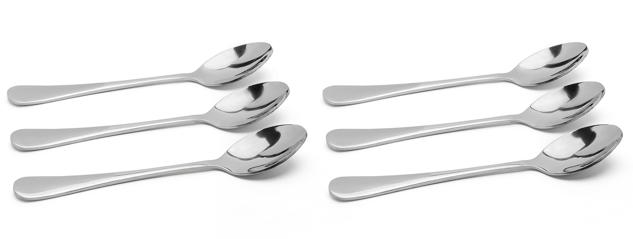 Набор містить 6 однакових ложки довжиною 123 мм.