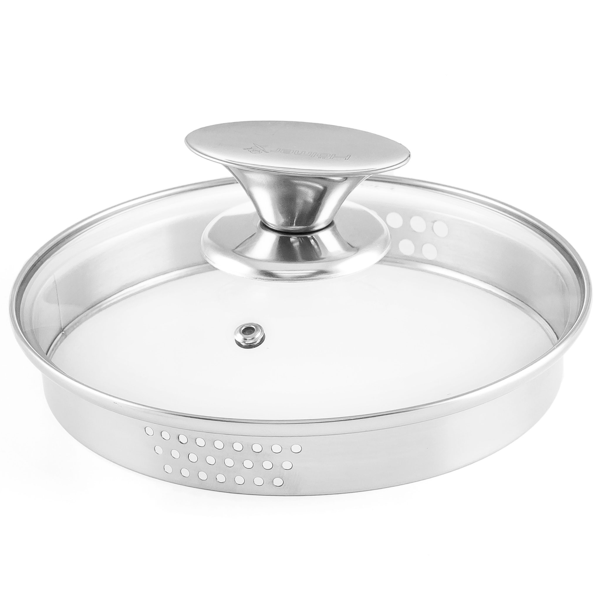 Кришка з удароміцного термостійкого скла, з ободом із нержавіючої сталі й отвором для виходу пари. Завдяки тому, що кришка прозора легко спостерігати за приготуванням їжі, не знімаючи її з каструлі.