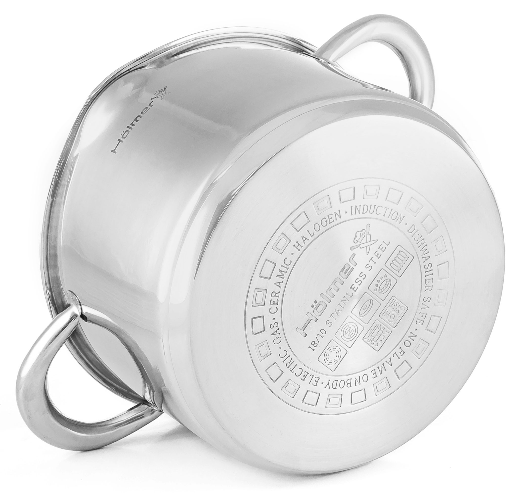 Набір посуду Hölmer CS-3451-SSD Orly виготовлено із високоякісної нержавіючої сталі. Сталь 18/10 — винятково жароміцний, ударостійкий, зносостійкий, не схильний до корозії матеріал. Крім цього володіє антикорозійними властивостями, стійка до впливу кислот і лугів і довговічна у використанні, не змінює смаку і кольору їжі. Сталь 18/10 менш пориста, ніж залізо або чавун, завдяки чому виготовлений із неї посуд стійкий до деформації та зберігає свою привабливість і функціональність упродовж багатьох років активної експлуатації.