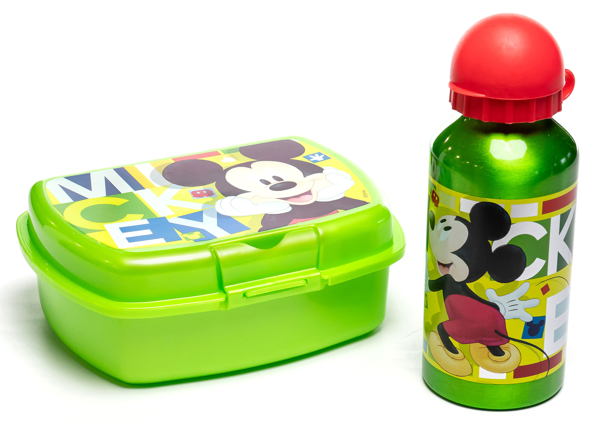 Набір посуду для школи за мотивами популярних мультфільмів про Міккі Мауса. Зображено головного героя - Міккі Мауса.