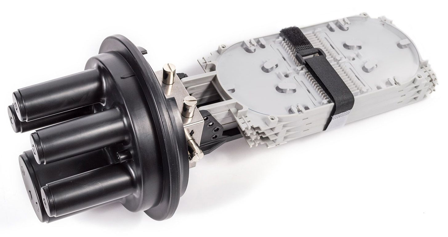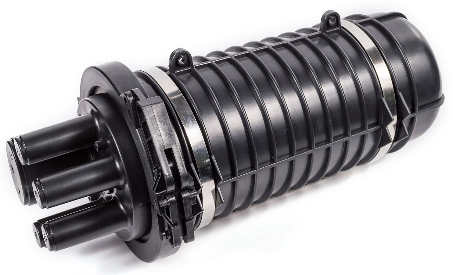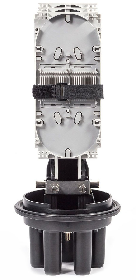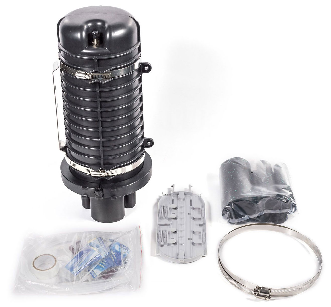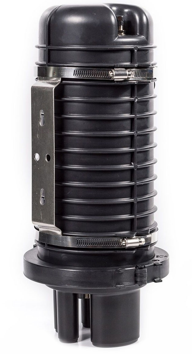 Тупикова оптична муфта FOSC-DHM-А4-05 на 5 кабельних вводів і 96 сварок. Дана муфта оптимізована для розміщення в каналах кабельної каналізації, в грунті, на опорі повітряних ВОЛЗ (укомплектована металевими хомутами!).