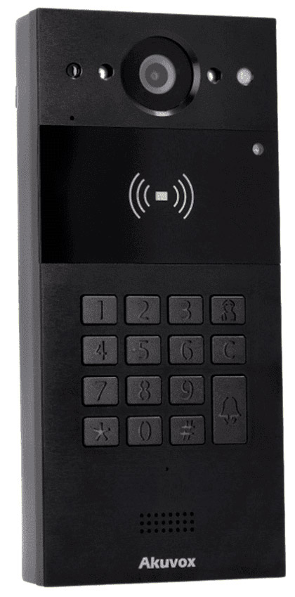 Панель виклику Akuvox R20K - IP-відеодомофон із цифровою клавіатурою та розширеними функціями контролю доступу, призначений для використання в офісних, житлових і комерційних системах безпеки. Корпус із алюмінію забезпечує високу механічну міцність, а клас захисту IP65 дозволяє експлуатацію пристрою в умовах зовнішнього середовища.