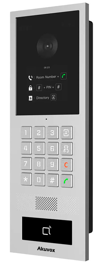 Аудіосистема S532 підтримує двосторонній зв’язок через SIP протоколи (RFC2543/RFC3261) із широким набором кодеків (G.711a/μ, G.722), шумопригніченням та ехоподавленням для чіткої голосової комунікації. Панель також оснащена цифровою клавіатурою для введення PIN-кодів та зчитувачем карт RFID/NFC, що розширює варіанти автентифікації доступу.