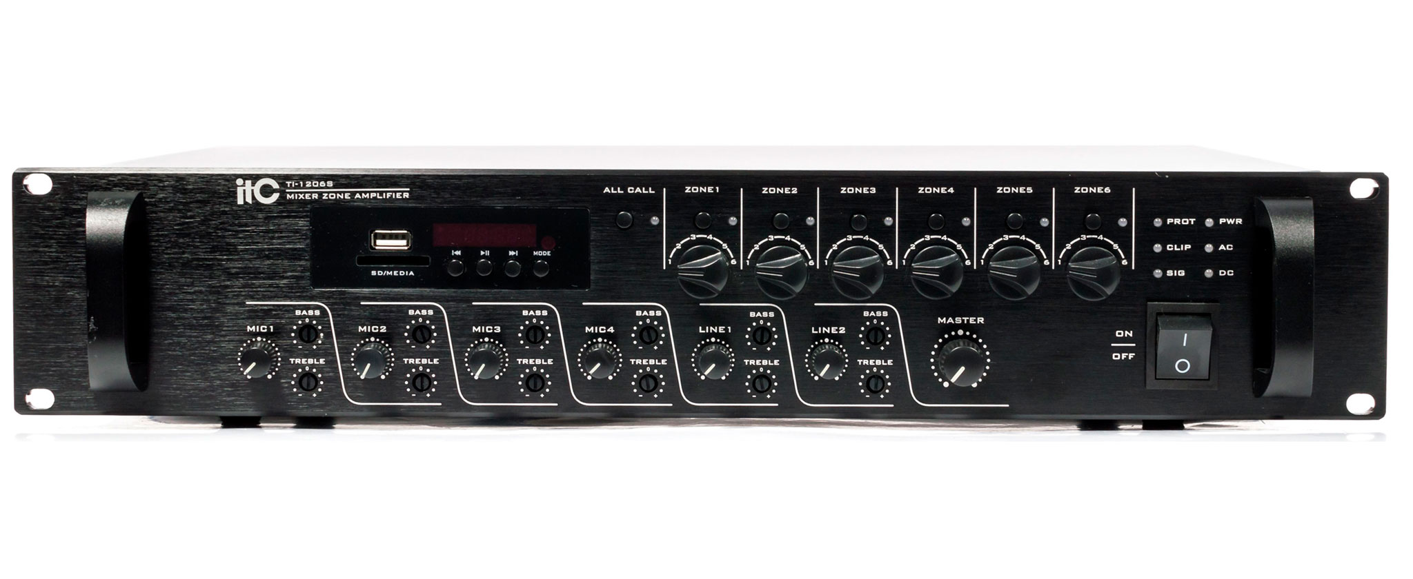 Микширующий усилитель предназначен для подключения источников звука и дальнейшего их усиления для построения систем озвучивания с возможностью вкл/выкл и регулировки громкости звуковых зон (100В).