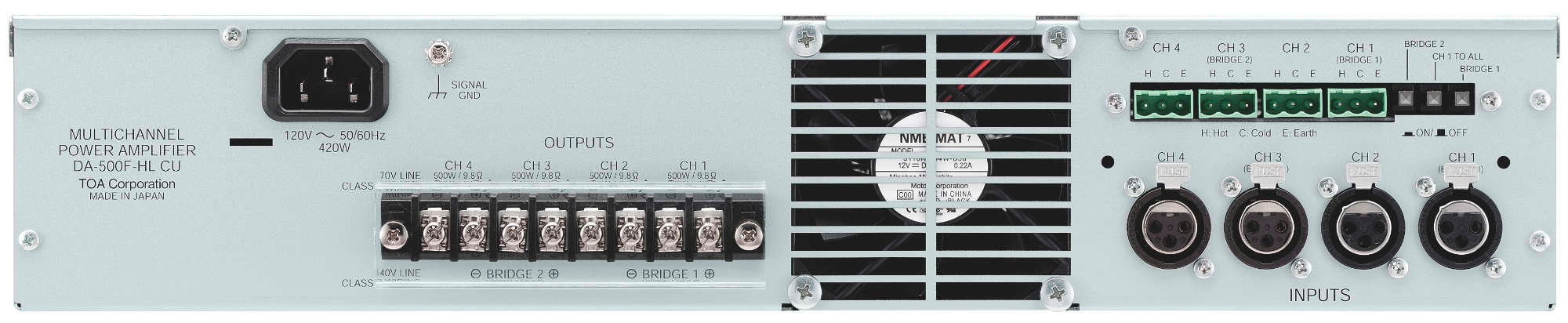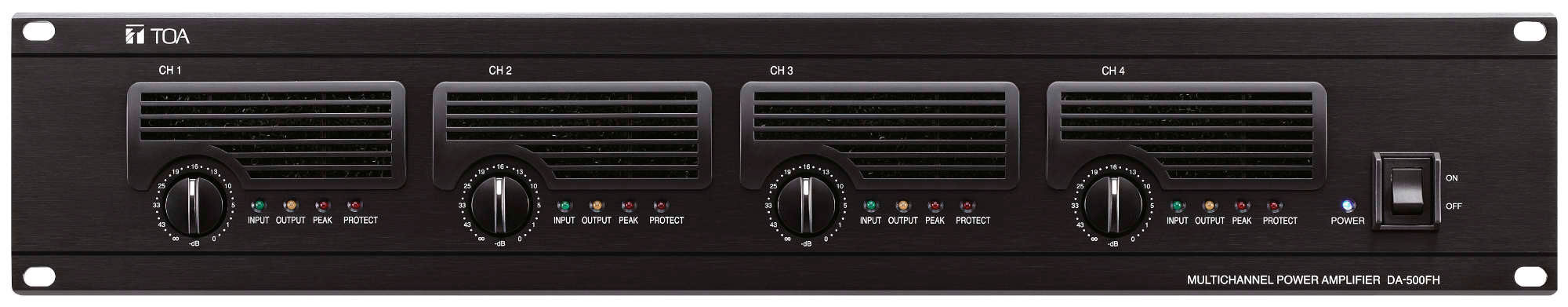 DA-500FH — це 4-канальний цифровий підсилювач потужності, призначений для високоомного розподілу напруги 100 В, має легку вагу, компактність, високу вихідну потужність і високу ефективність. Він забезпечує 500 Вт, 4 канали за допомогою імпульсного джерела живлення.
