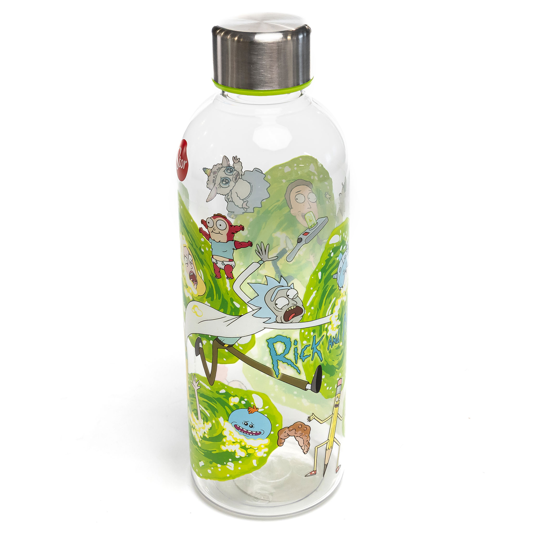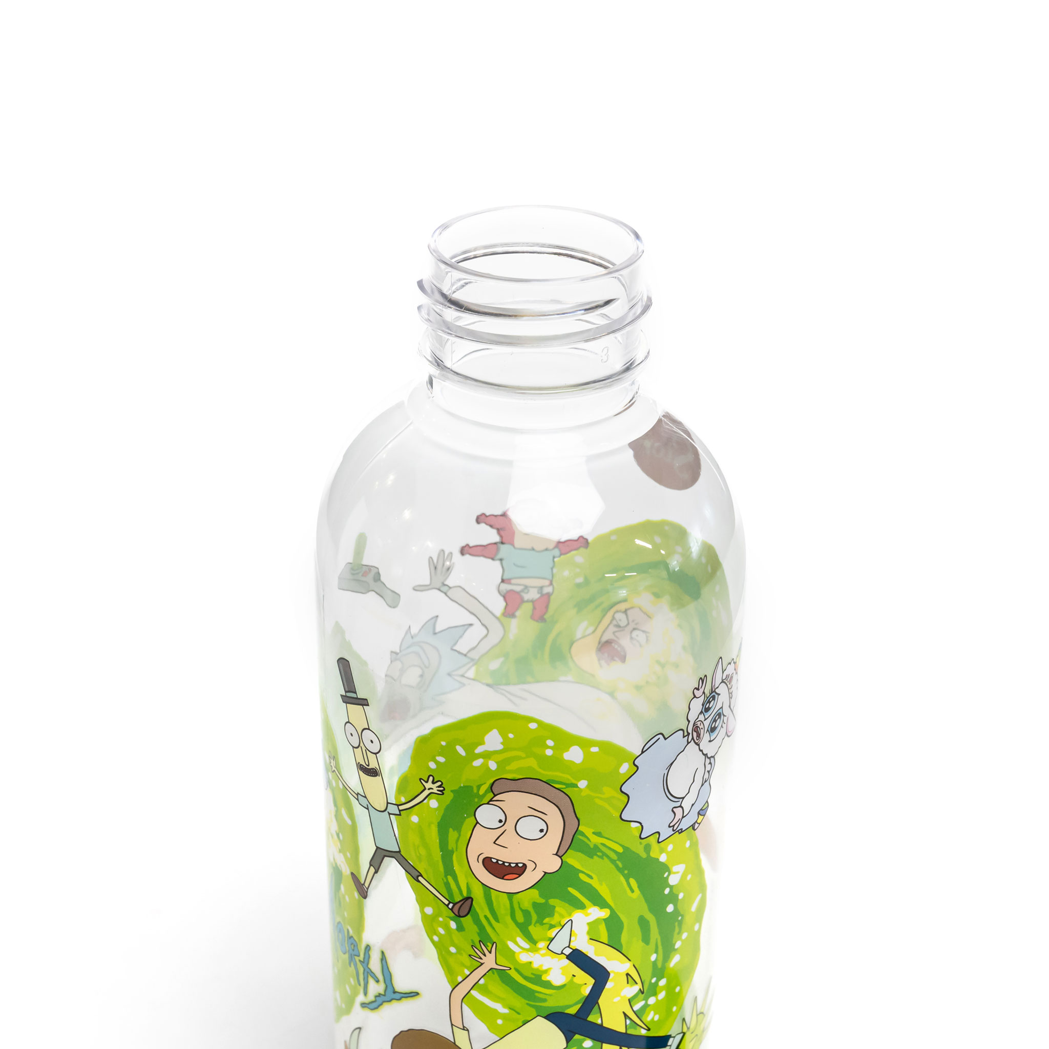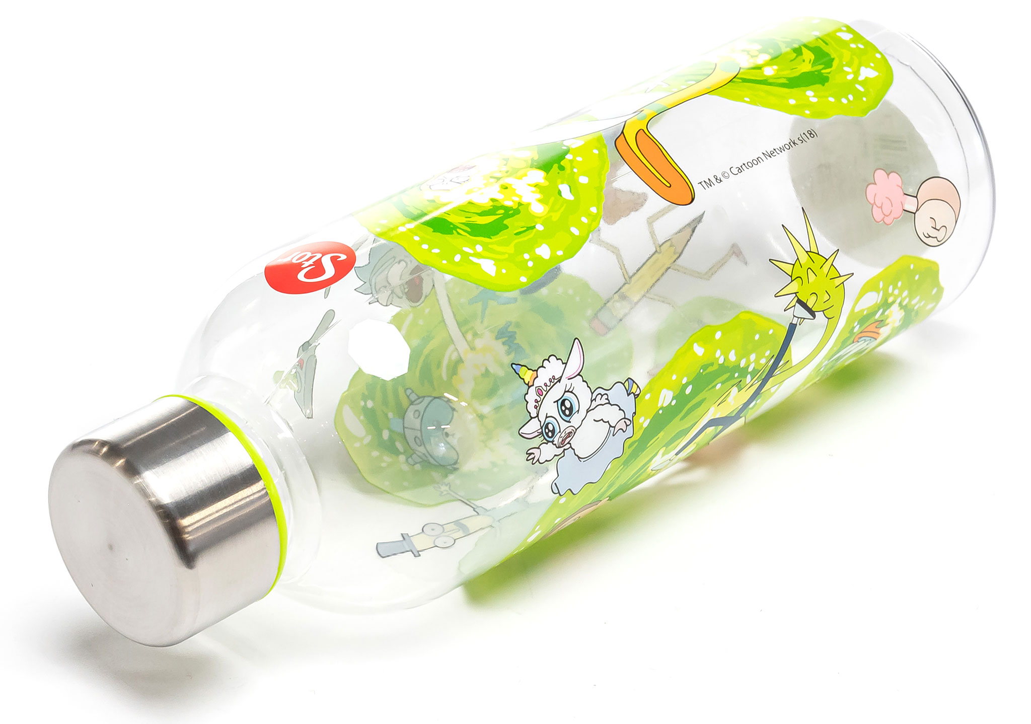 Пластикова пляшка для води за мотивами популярного мультфільму Rick and Morty. Загальний об'єм: 850 мл. Металева кришка з різьбою для більшої зручності користування.