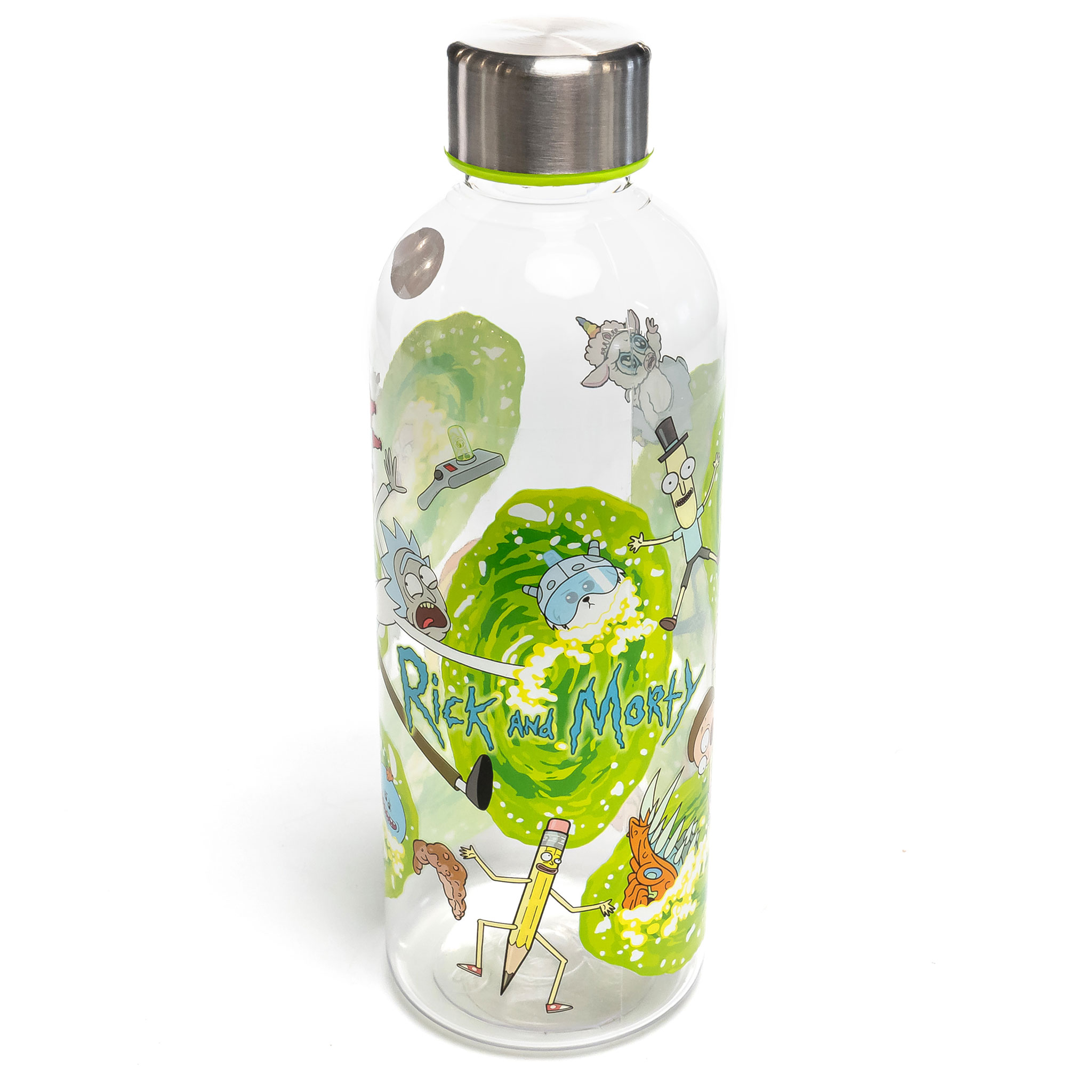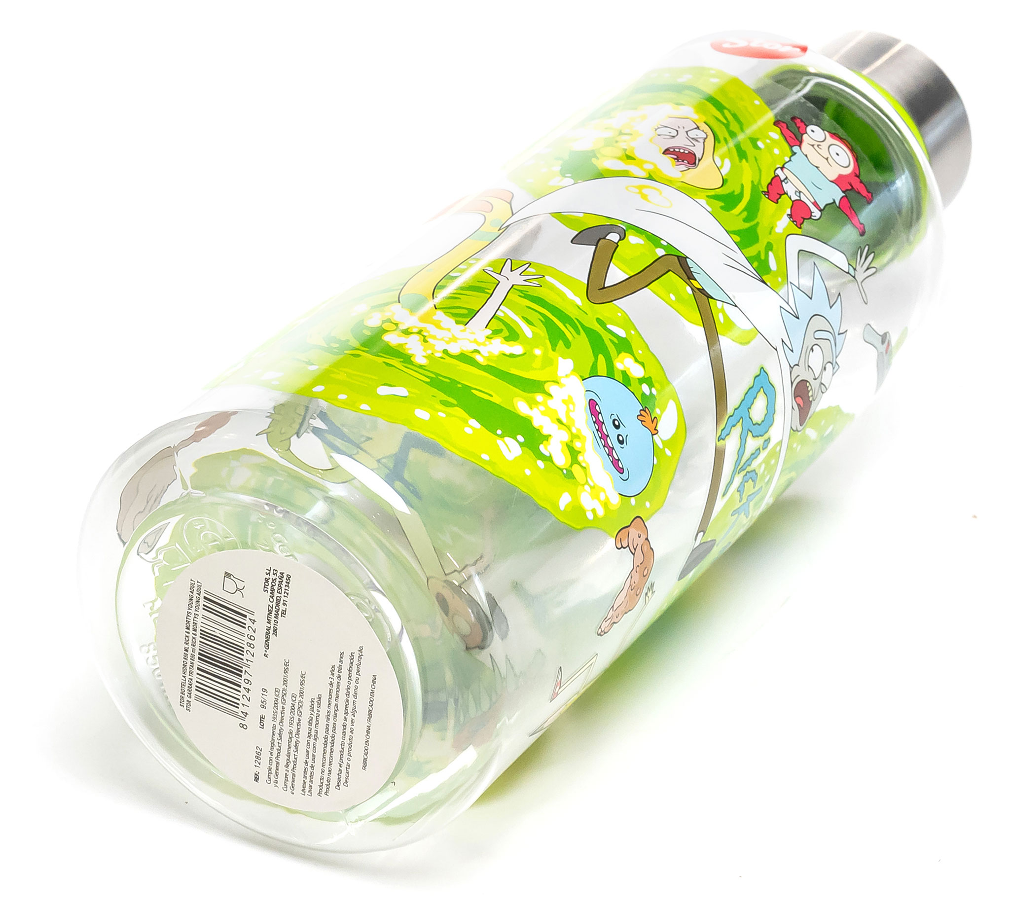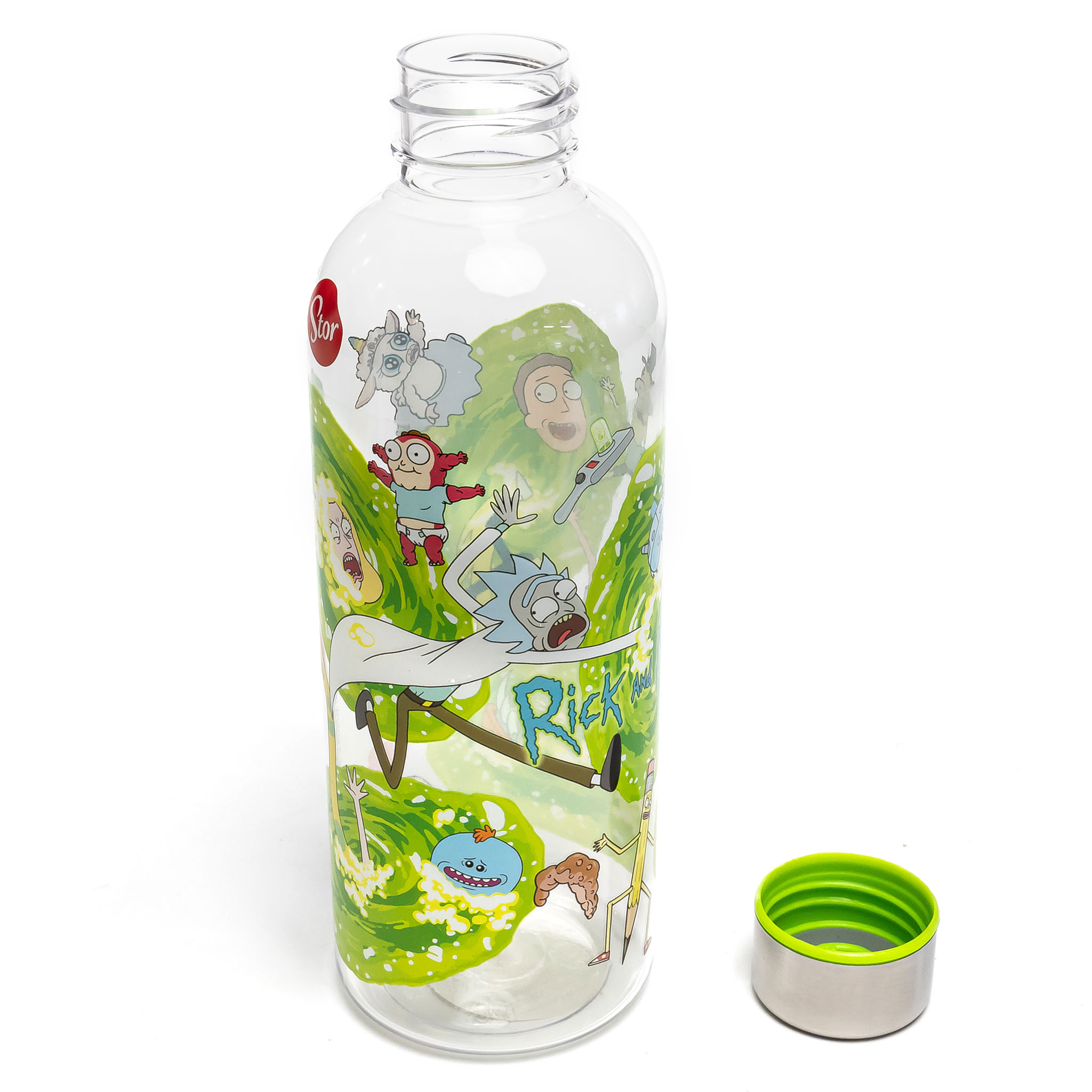Пластикова пляшка для води за мотивами популярного мультфільму Rick and Morty. Загальний об'єм: 850 мл. Металева кришка з різьбою для більшої зручності користування.
