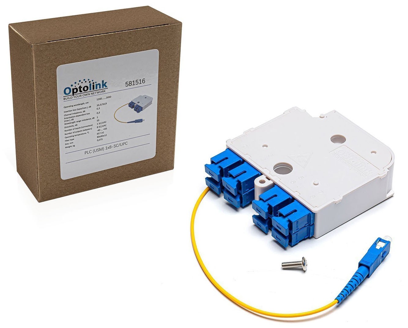 Опис оптичних подільників Optolink PLC 1*8 SC/UPC (USM-корпус)