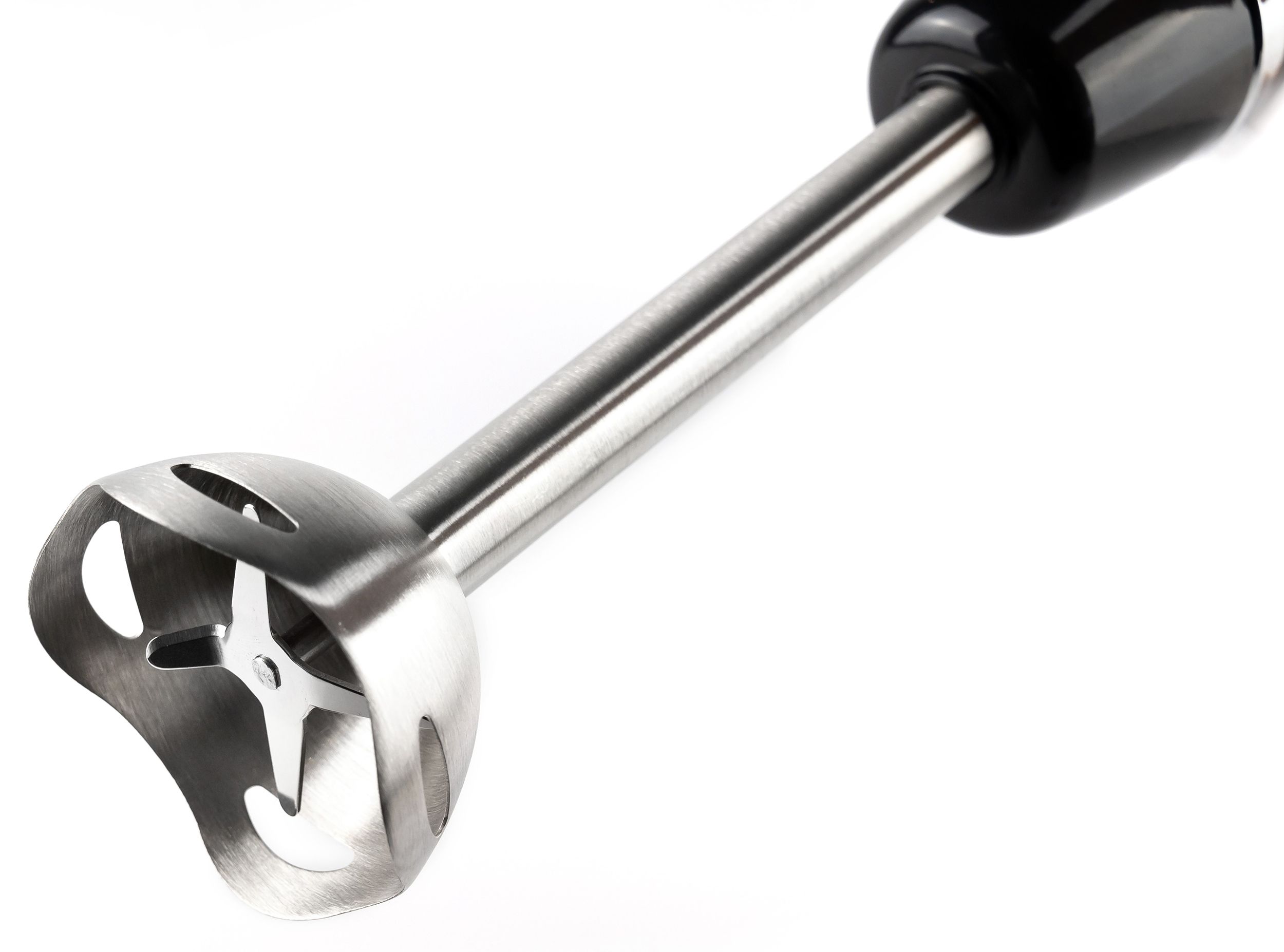 Універсальна форма ніжки блендера і розташування ножів, сприяють швидкому змішуванню й досягненню однорідної маси. Панель управління має 2 кнопки швидкості (5 ступенів регулювання) та окремий, «турборежим».
