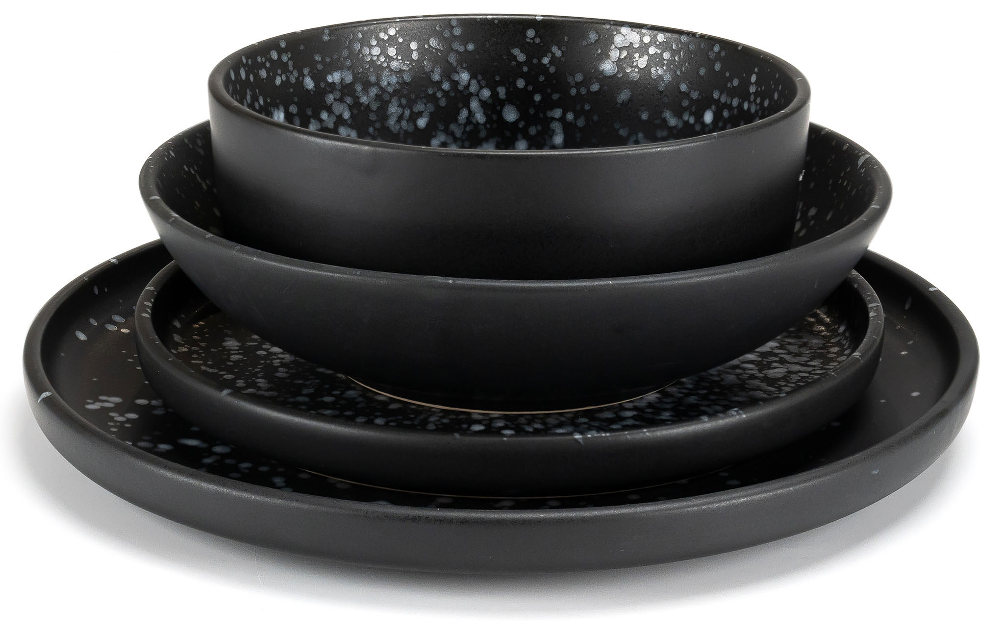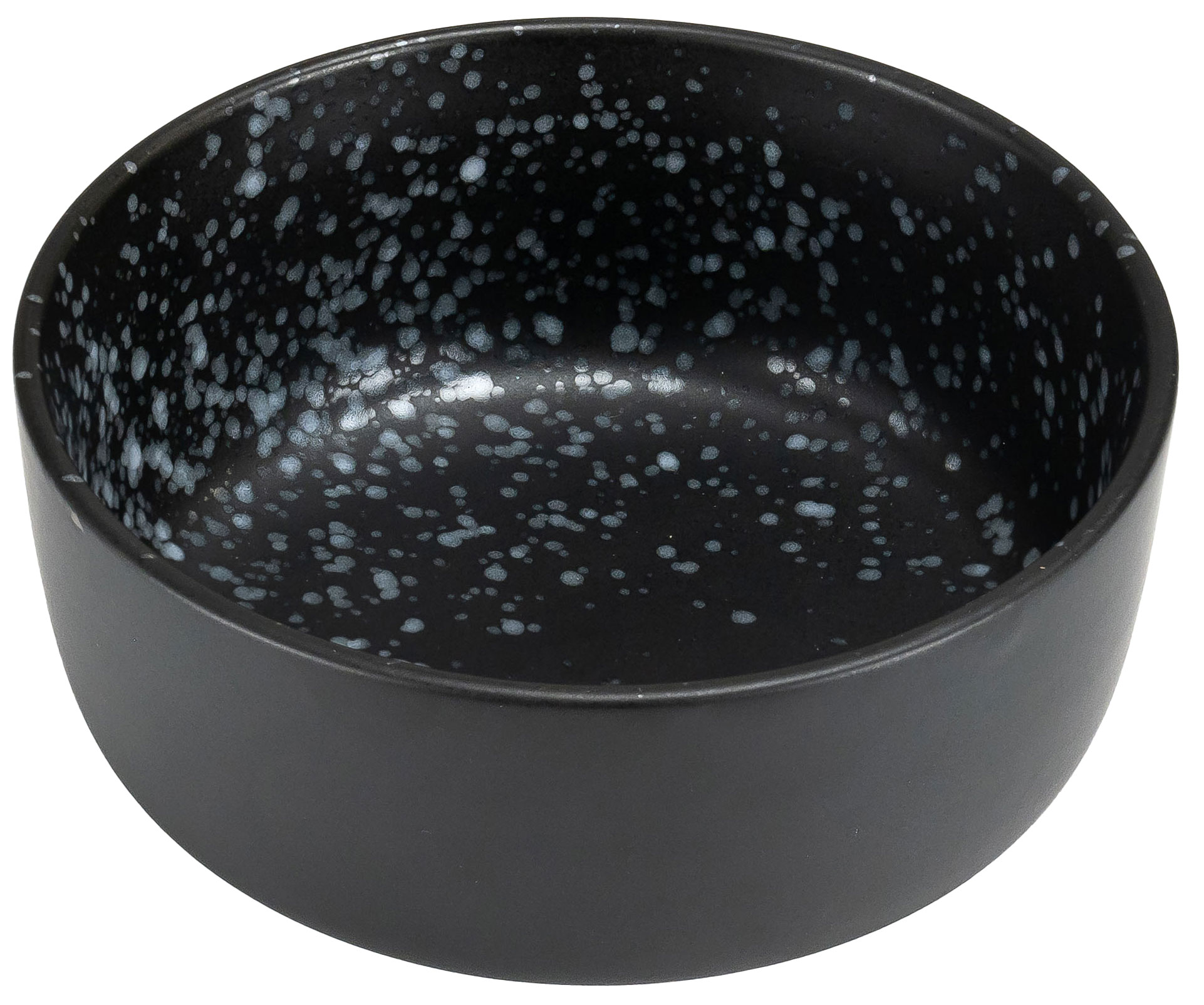 Матово-чорний дизайн із крапчастим візерунком виглядає сучасно та універсально, підходячи до будь-якої сервіровки. Кам'яна кераміка забезпечує не лише естетику, але й зручність у використанні: салатник можна мити в посудомийній машині та використовувати для розігріву в мікрохвильовій печі.